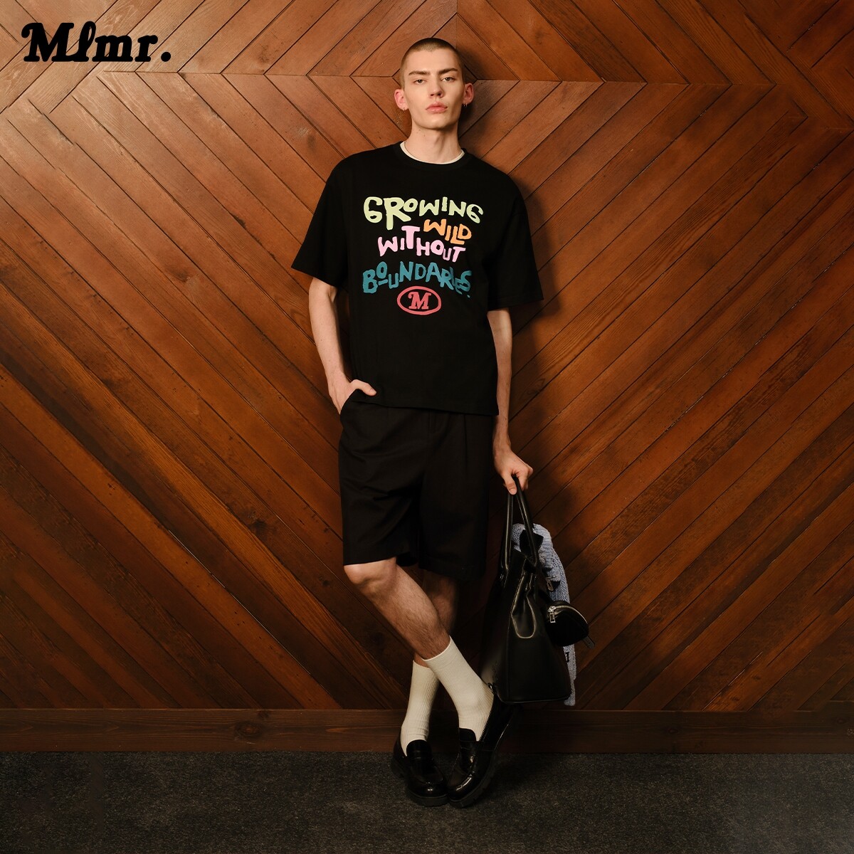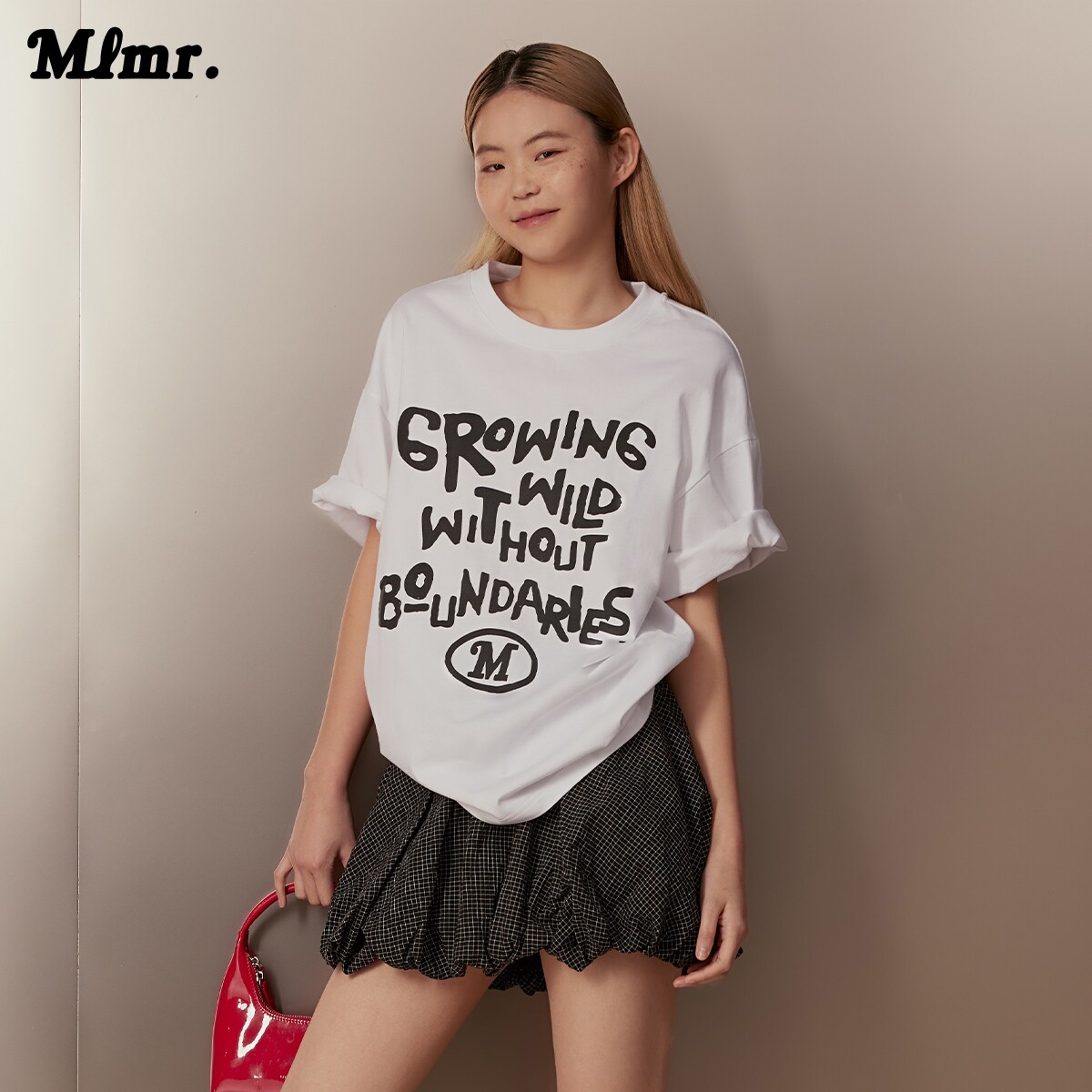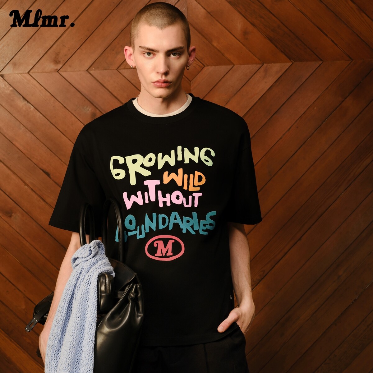 MLMR夏季新款浅春系穿搭趣味植绒字母印花舒适纯棉T恤男女款