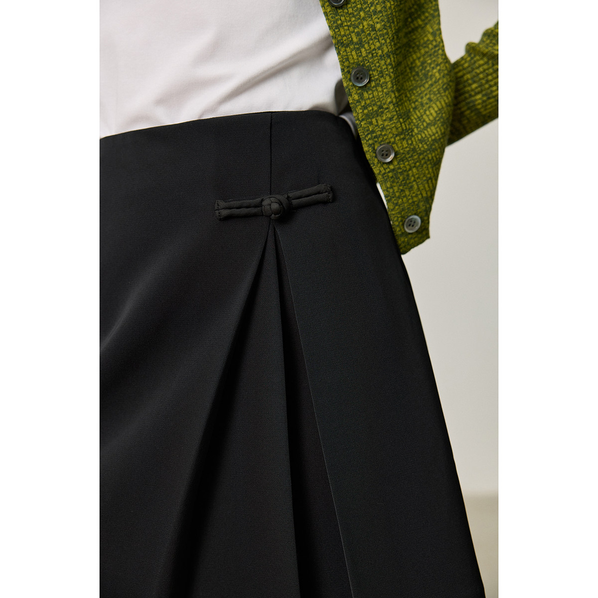 【商场同款】LILY新款新中式改良国潮盘扣A字裙压褶半身裙