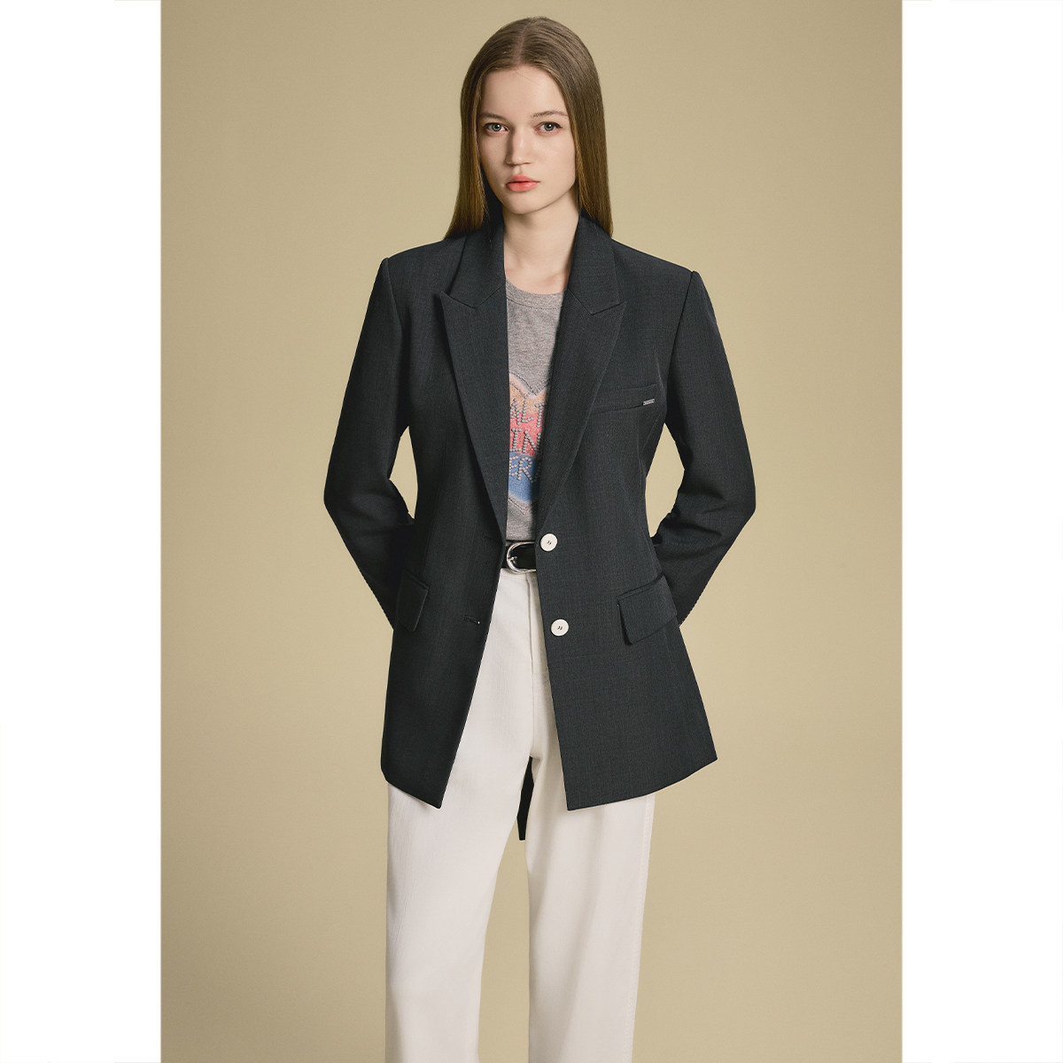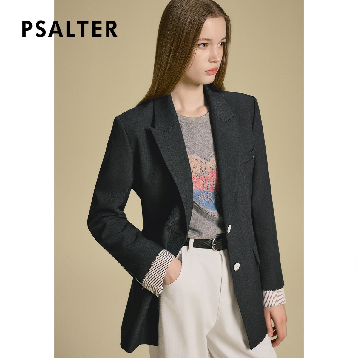 诗篇专选假两件袖口系带修身西装短外套2025秋款
