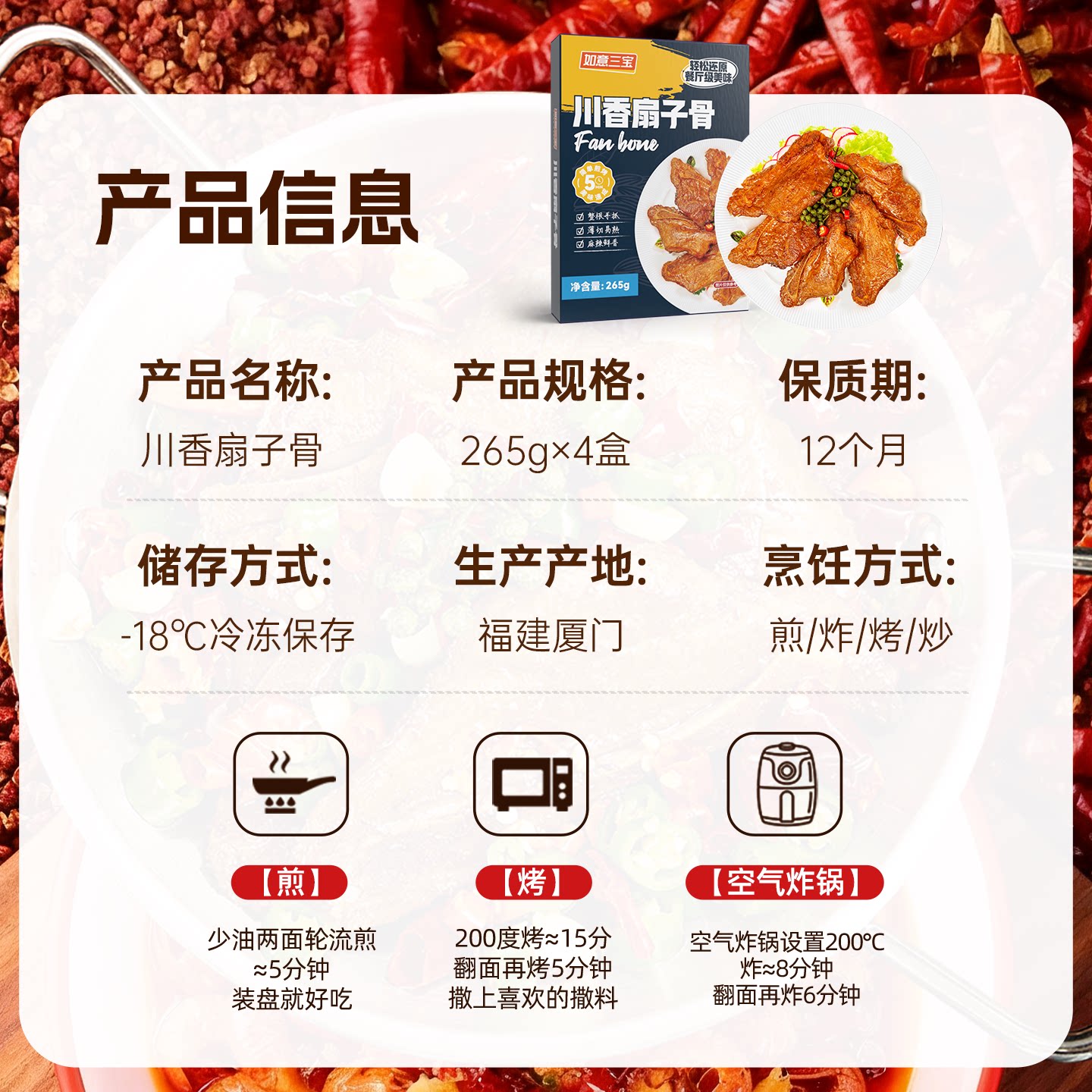 如意三宝手抓扇子骨冷冻半成品255gx4带肉猪排骨酒店家用生鲜食材