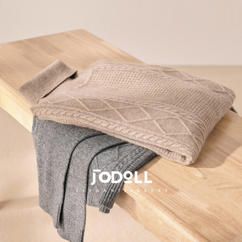 鄂尔多斯市秋冬款羊绒衫男女商务高翻领针织纯色特厚打底毛衣套衫