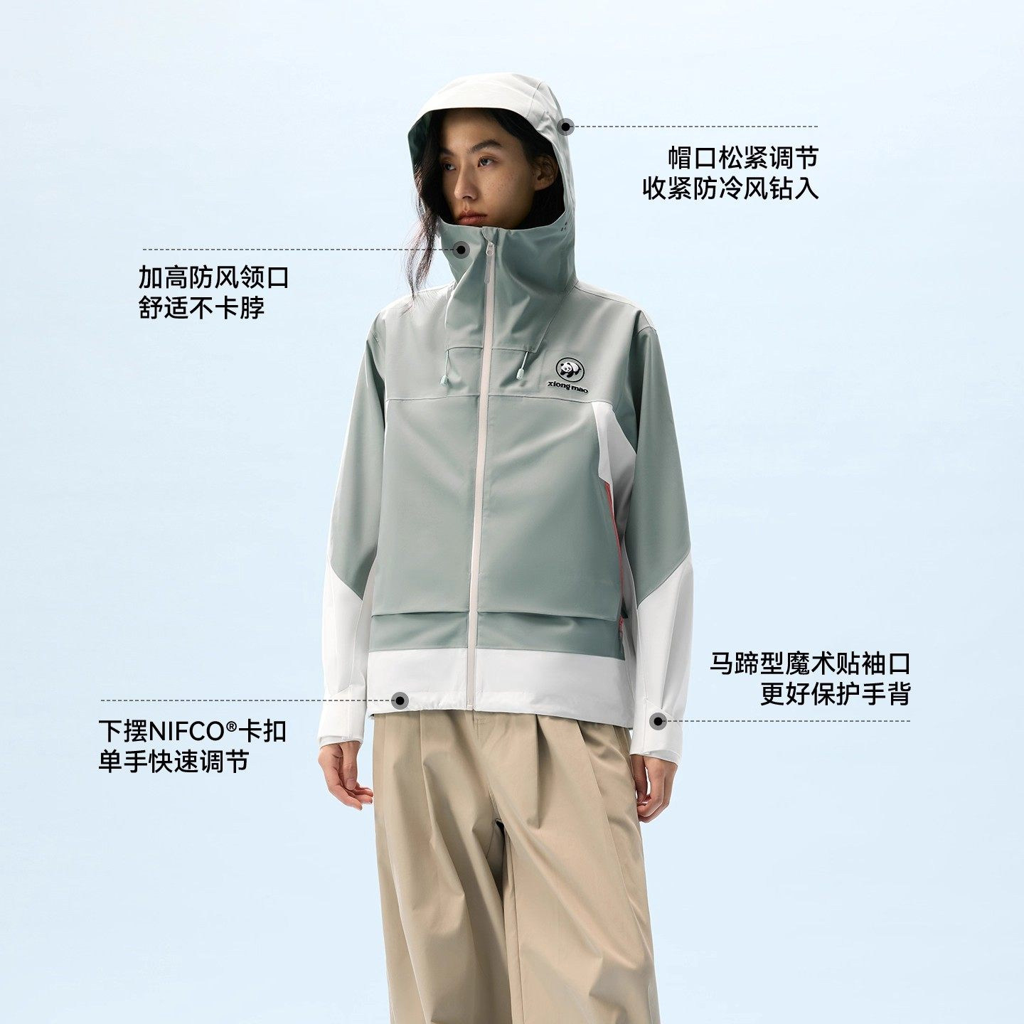 熊猫单层冲锋衣男女2025防风防水连帽夹克机能拼色女装外套登山服