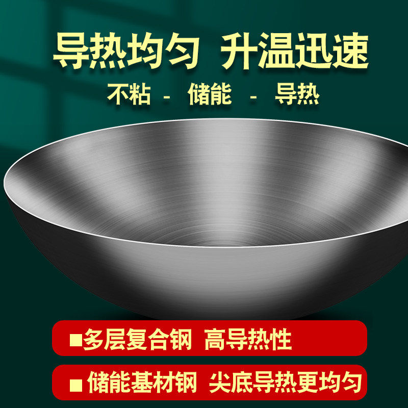 苏泊尔家用不锈钢炒锅老式圆底炒锅无油烟不沾锅家用无涂层炒锅a5