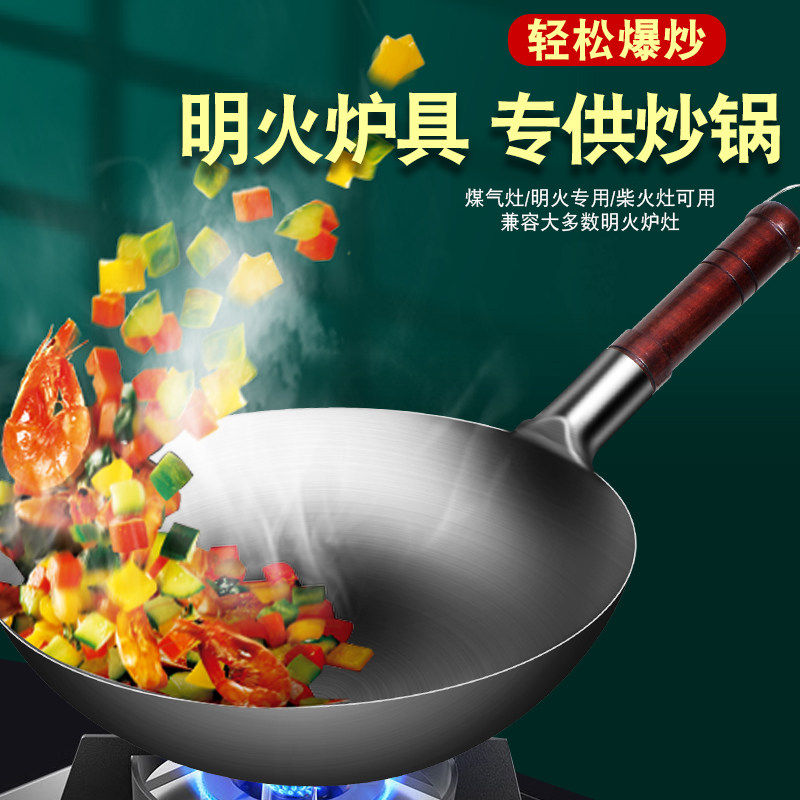 铁锅官方旗舰炒菜锅老式炒锅铁锅家用不粘锅无涂层燃气灶适用