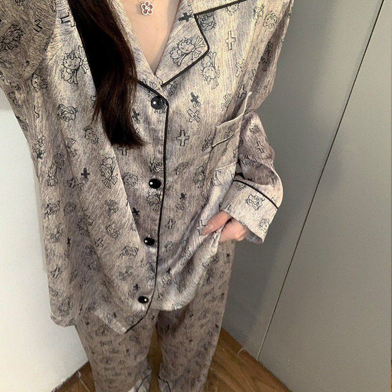红豆可爱鬼睡衣女款2026新款春秋季冰丝长袖高级感丝绸夏天家居服