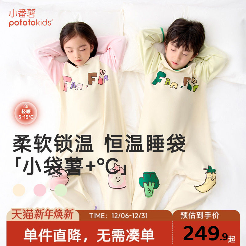 小番薯potatokids儿童连体睡衣男童2025秋季新款防踢女童连体睡袋