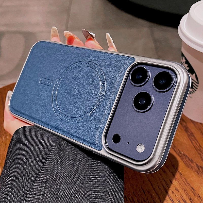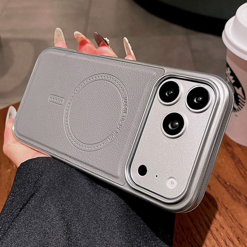 适用苹果16promax手机壳新款iPhone15磁吸magsafe高级感皮纹14简约15plus超薄13全包防摔保护套女款软边硬壳