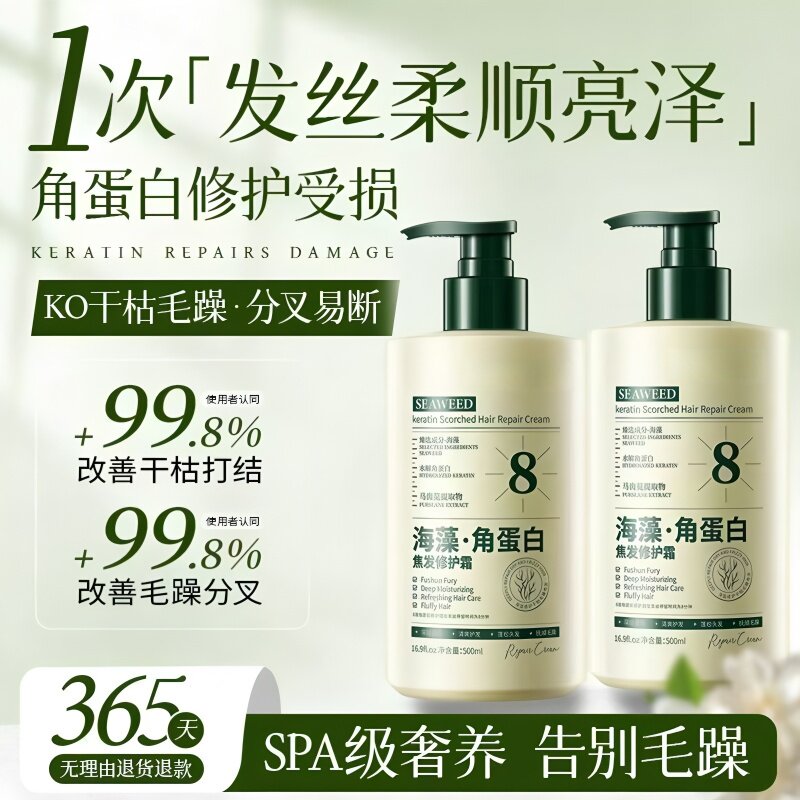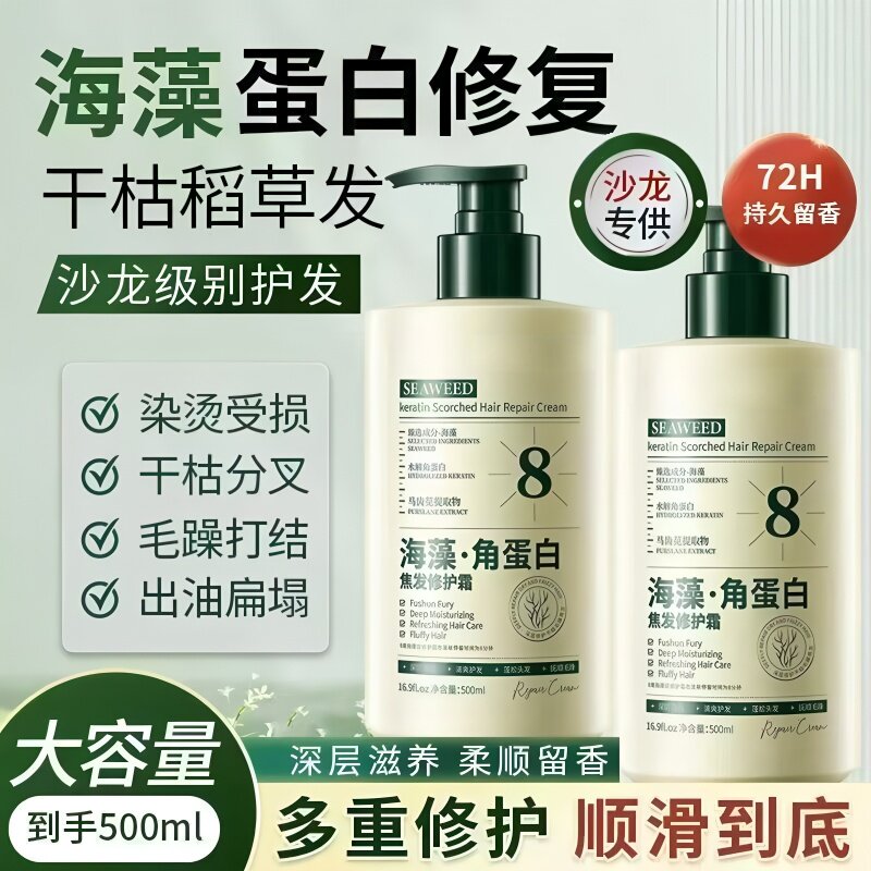 海藻角蛋白护发素发膜矫正毛躁修复染烫受损柔顺养发固色持久留香