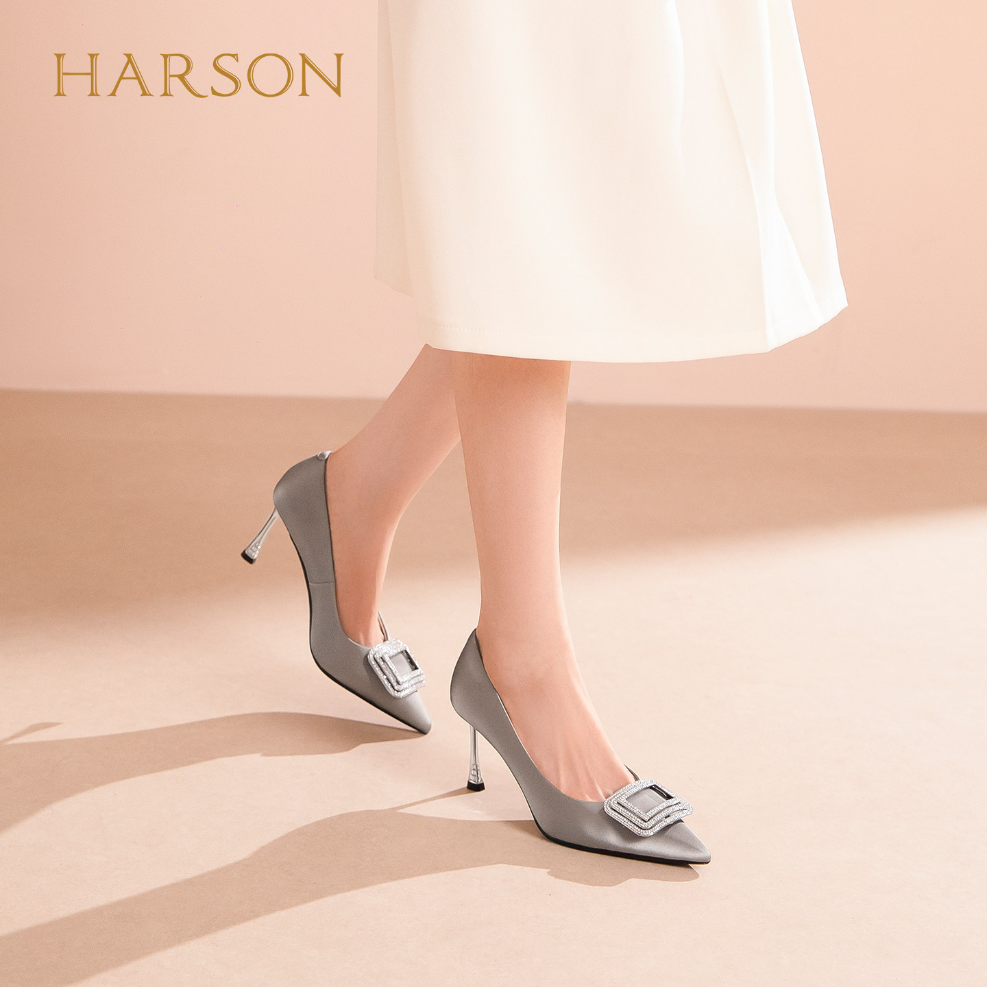 哈森气质尖头细高跟鞋婚鞋宴会鞋水钻浅口单鞋2026新款HS267123
