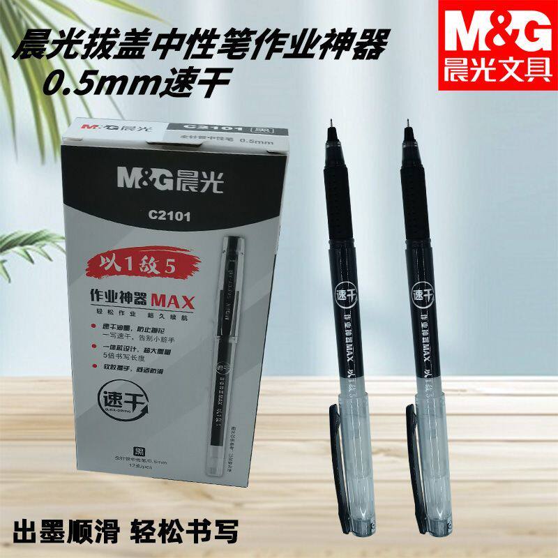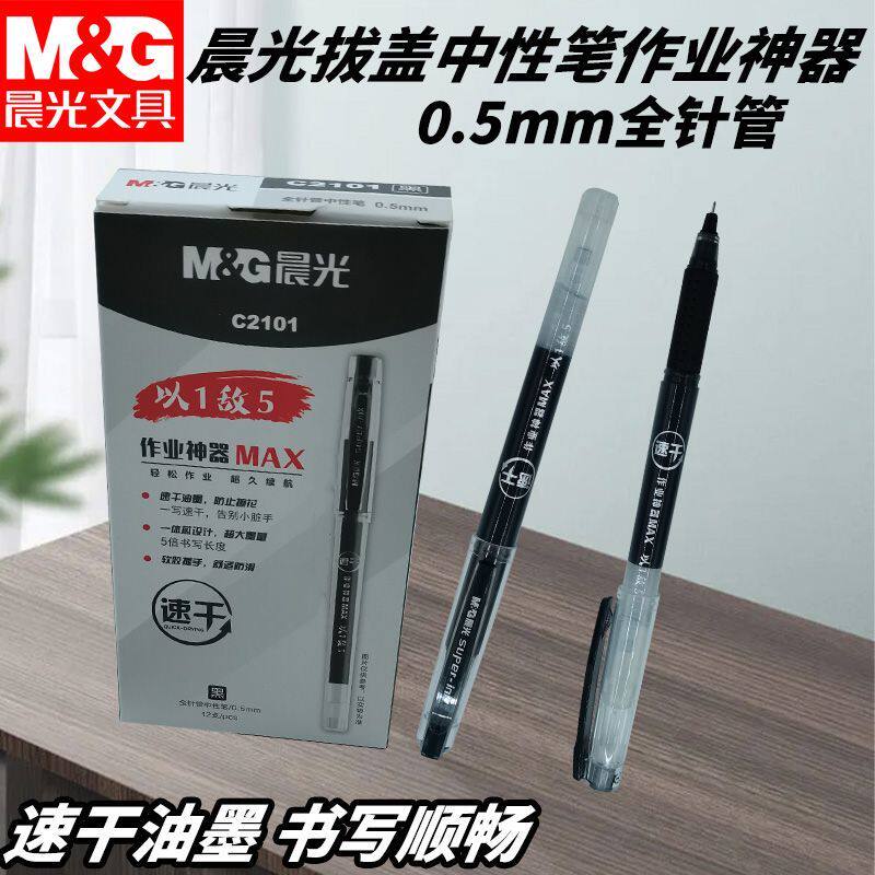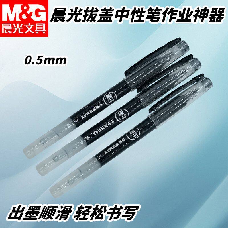 晨光拔盖中性笔作业神器AGPC2101速干0.5黑全针管学生考试办公用