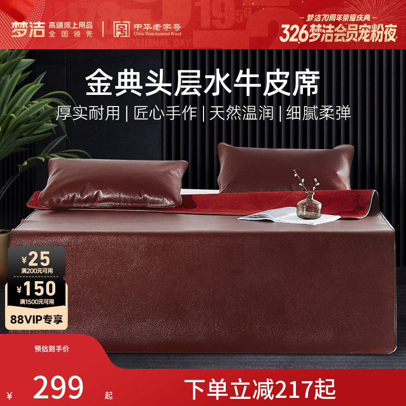 梦洁牛皮凉席头层水牛皮席子空调凉席三件套软席1.5m1.8m家用新款
