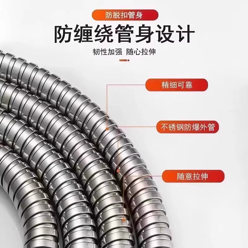 加厚防爆花洒淋浴软水管加长淋雨喷头莲蓬头浴室热水器不锈钢软管