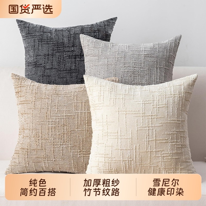 新款雪尼尔加厚抱枕套竹节纹理单面现代客厅沙发纯色靠枕飘窗抱枕