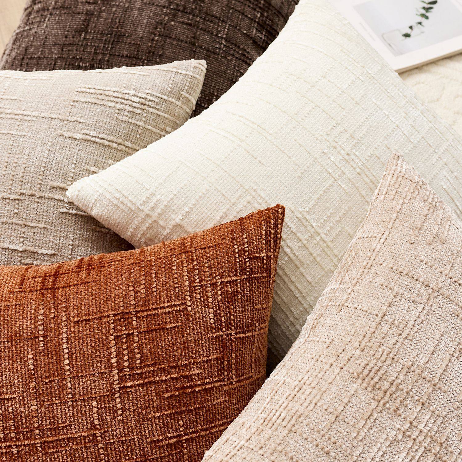 2025新款雪尼尔咖棕抱枕套方形大号靠垫床头靠枕腰靠沙发靠背定制