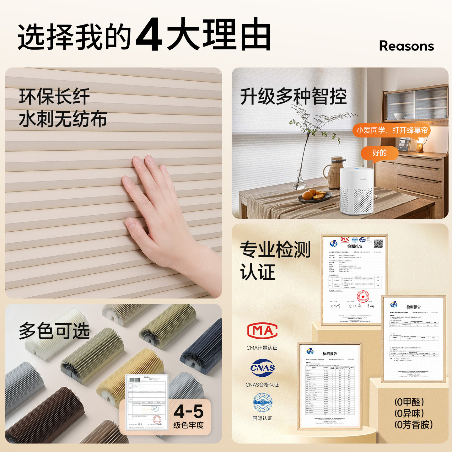 贵品全遮光蜂巢卷帘2025新款卧室客厅阳台免打孔防水隔热防晒降噪