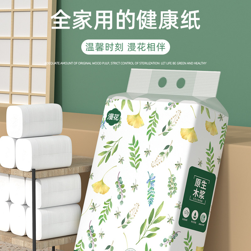 漫花实惠无芯卷纸卫生纸家用纸巾原生木浆卷筒纸厕所手纸大卷卷装