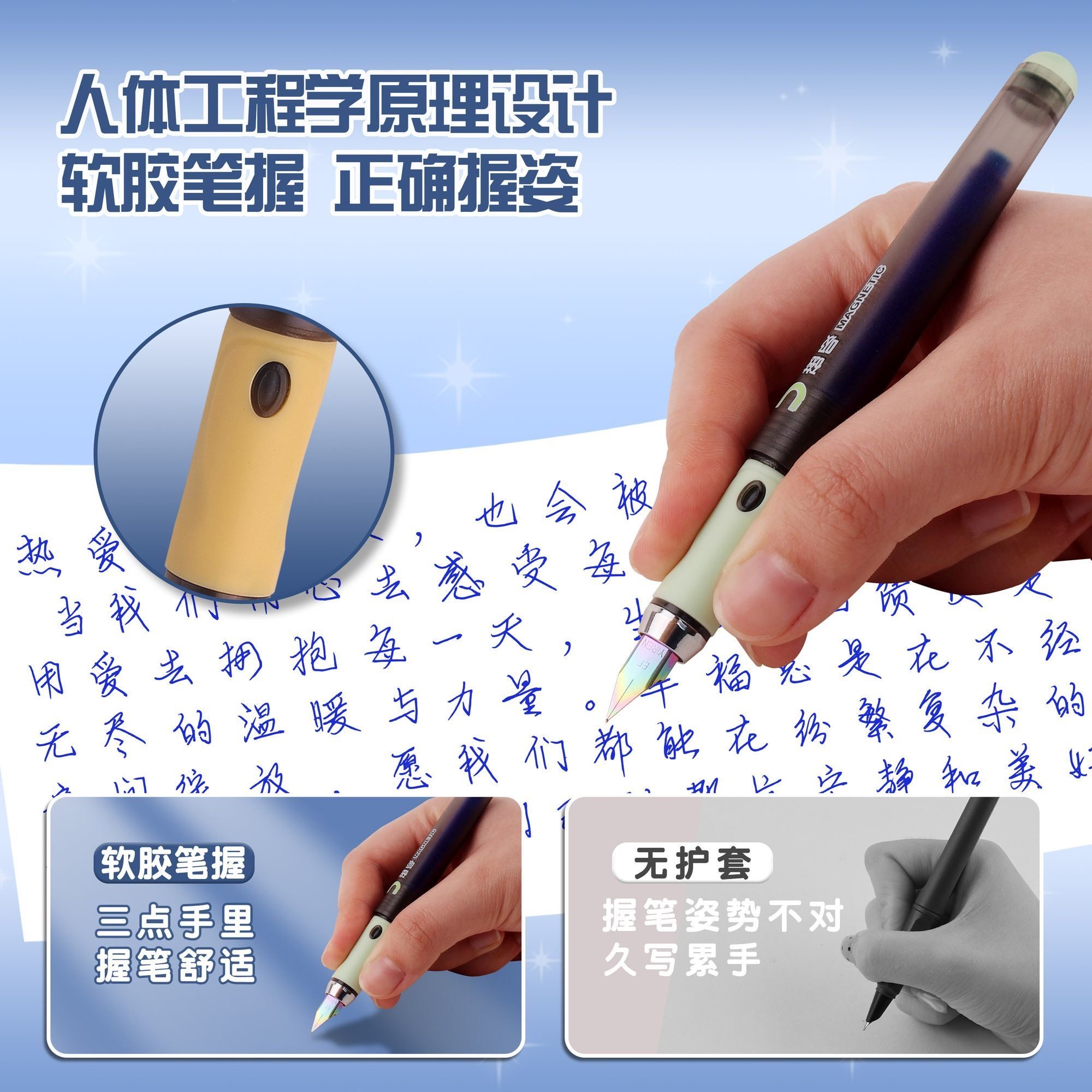 依人磁吸热敏可擦钢笔小学三年级练字0.38mm初学正姿专用钢笔