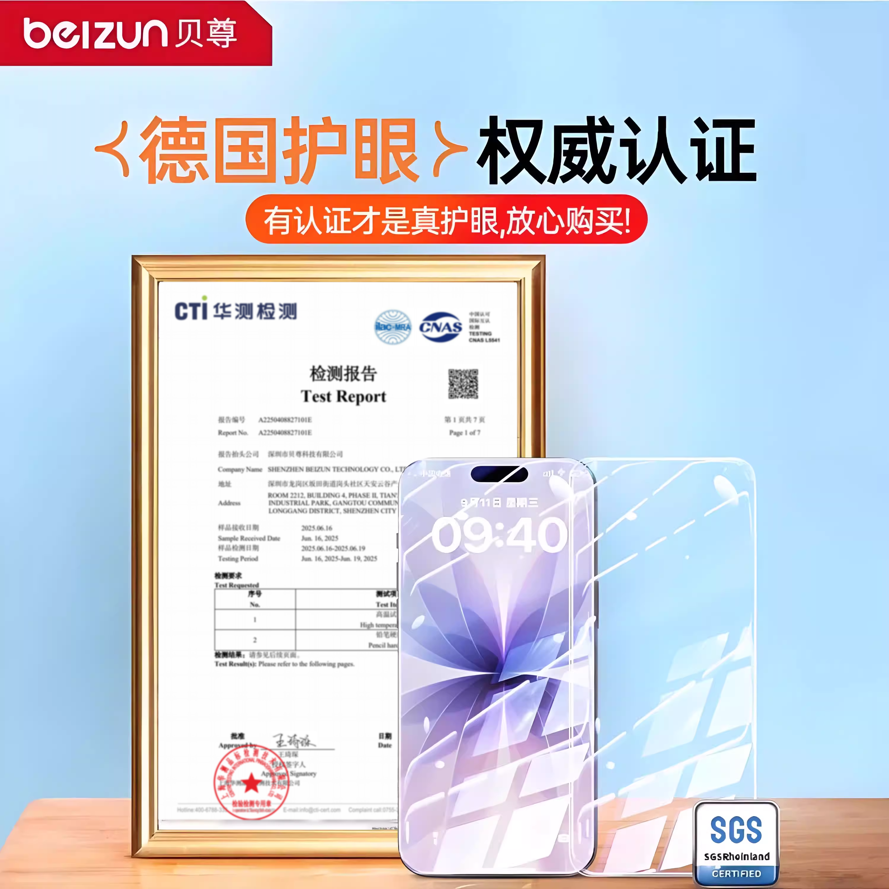 【超越AR德国护眼】贝尊适用于苹果17promax钢化膜iphone16pro手机膜新款air防窥贴膜15防蓝光14防偷窥por抗x