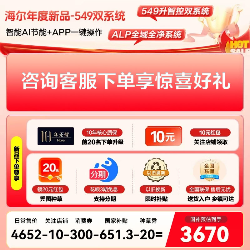 [双系统]海尔小红花549L十字对开四门一级能效家用制冰电冰箱旗舰