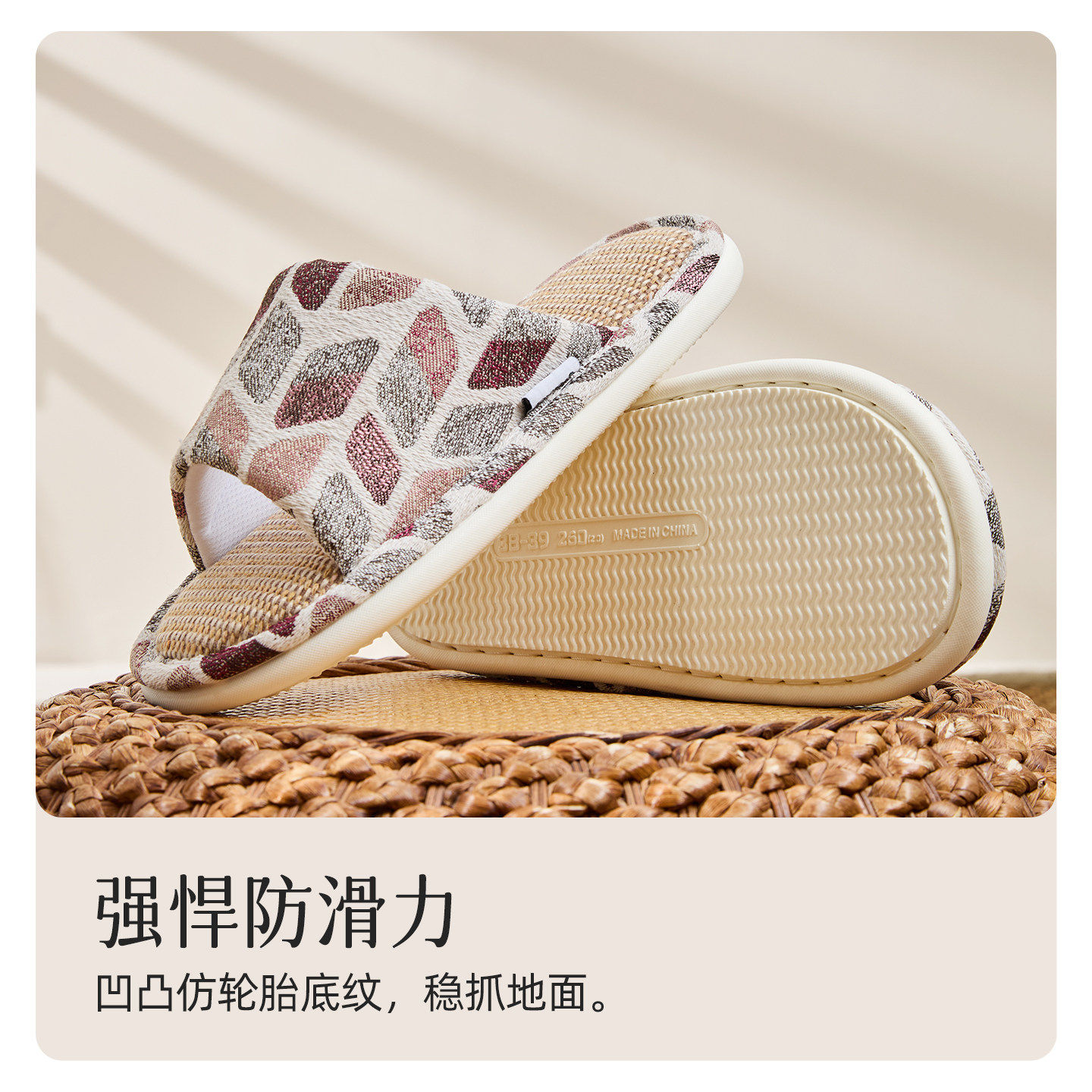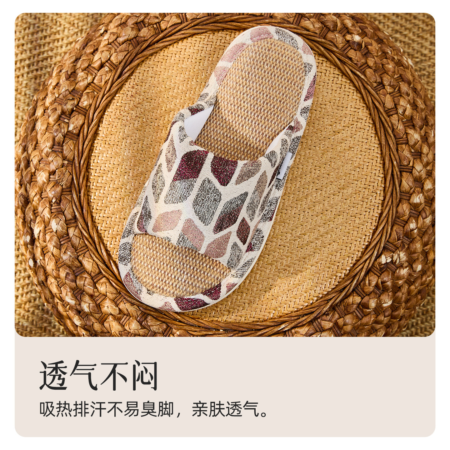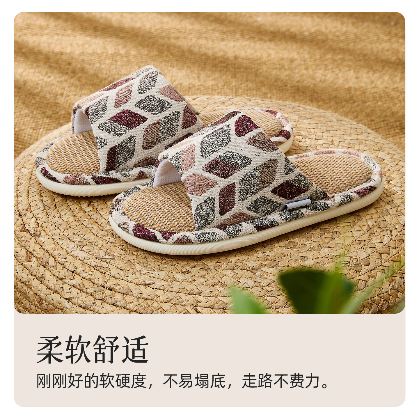 洁丽雅枫叶亚麻拖鞋女四季2026年新款室内居家软底防滑透气不闷脚