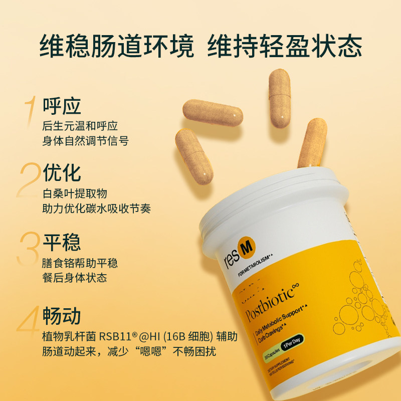 美国resbiotic促纤体因子后生元减糖阻碳轻盈小黄瓶30粒
