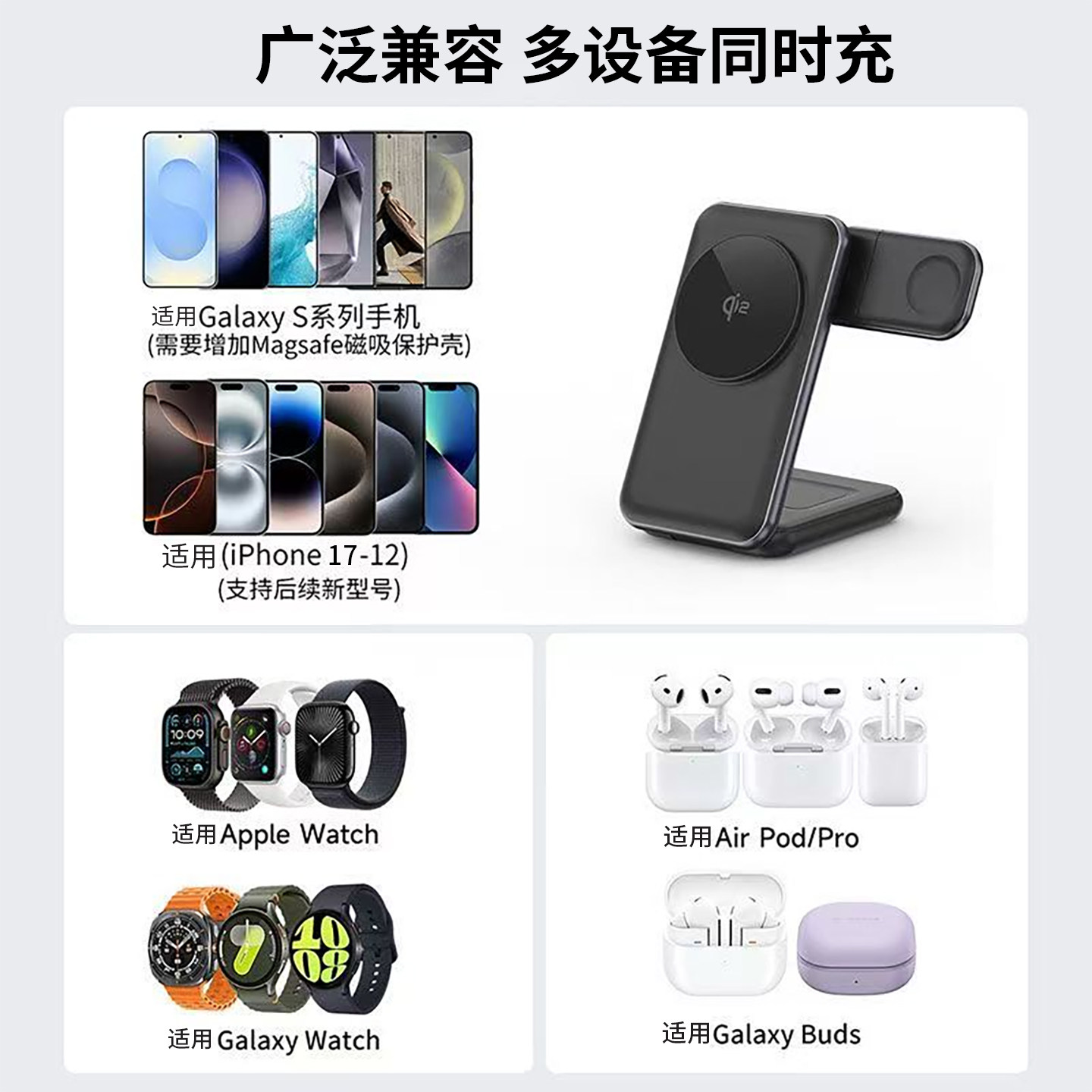 适用三星s26ultra三合一无线充电器S25 Edge/S24/S23手机Galaxywatch8手表iWatchs11苹果17磁吸快充耳机底座