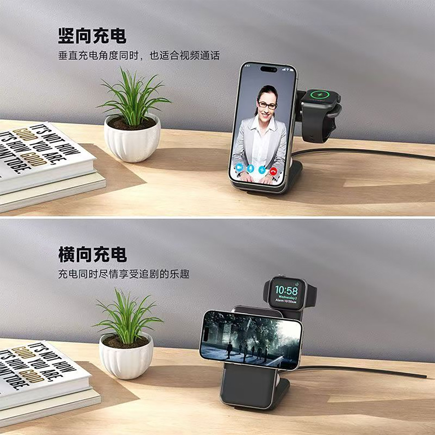 倍思数显无线充电器二合一适用苹果17Promax专用iphone16无限20W快充板15手机感应底座桌面华为三星车载通用