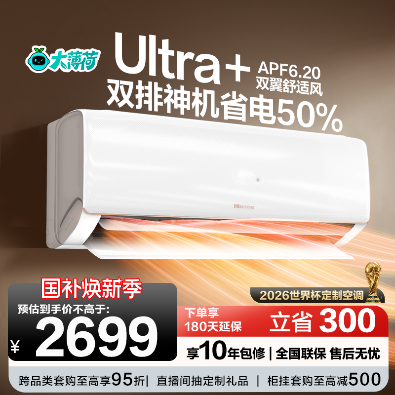 世界杯定制空调海信大薄荷智省电Ultra大1.5匹挂机卧室一级能效