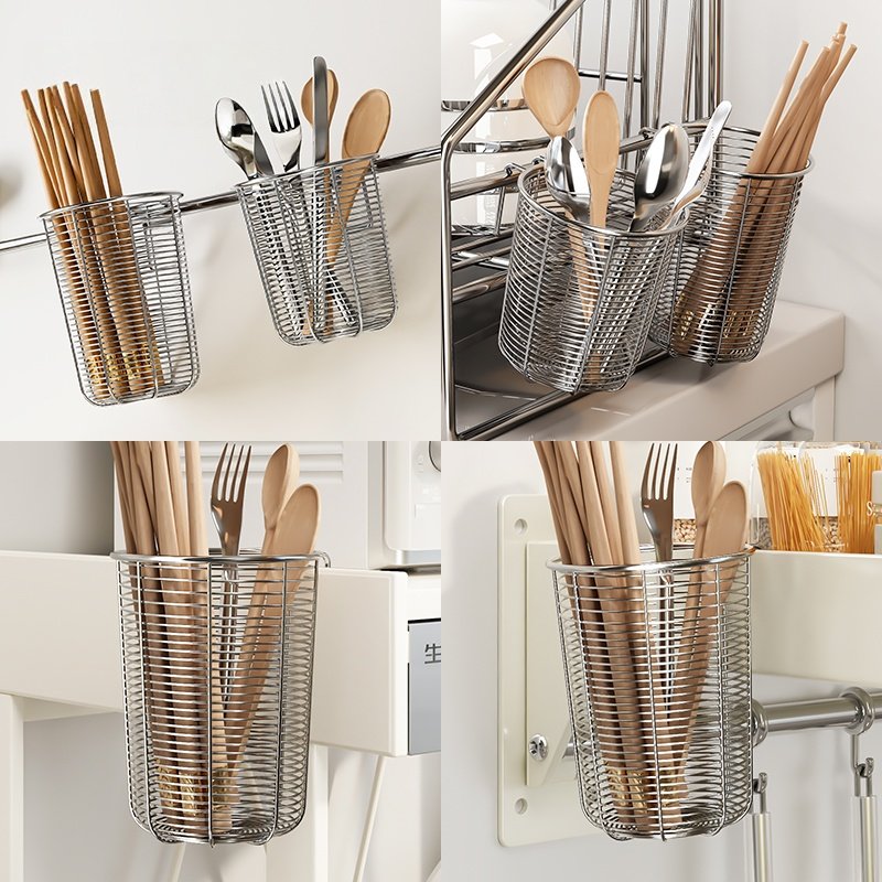 厨房304不锈钢筷子筒新款家用沥水架收纳盒防霉壁挂式勺子筷子笼