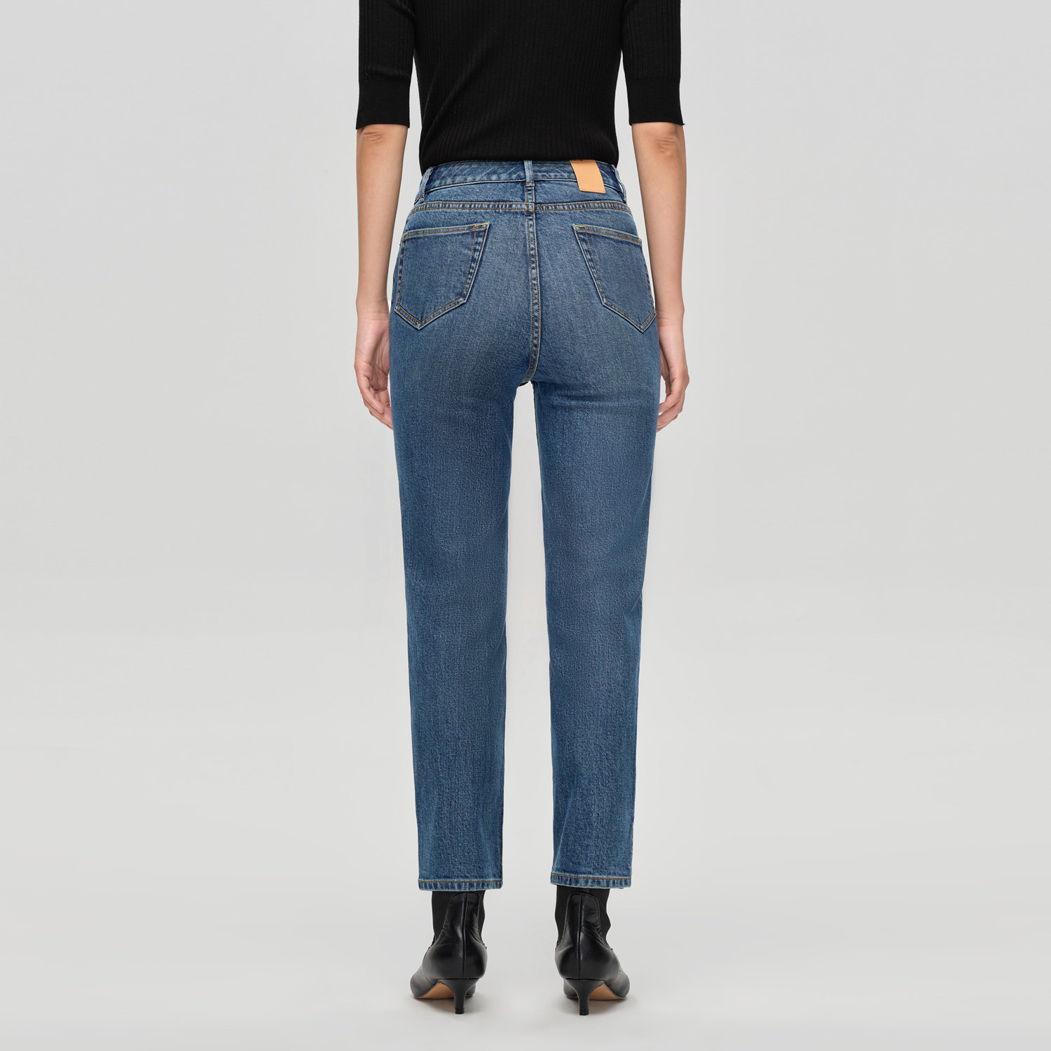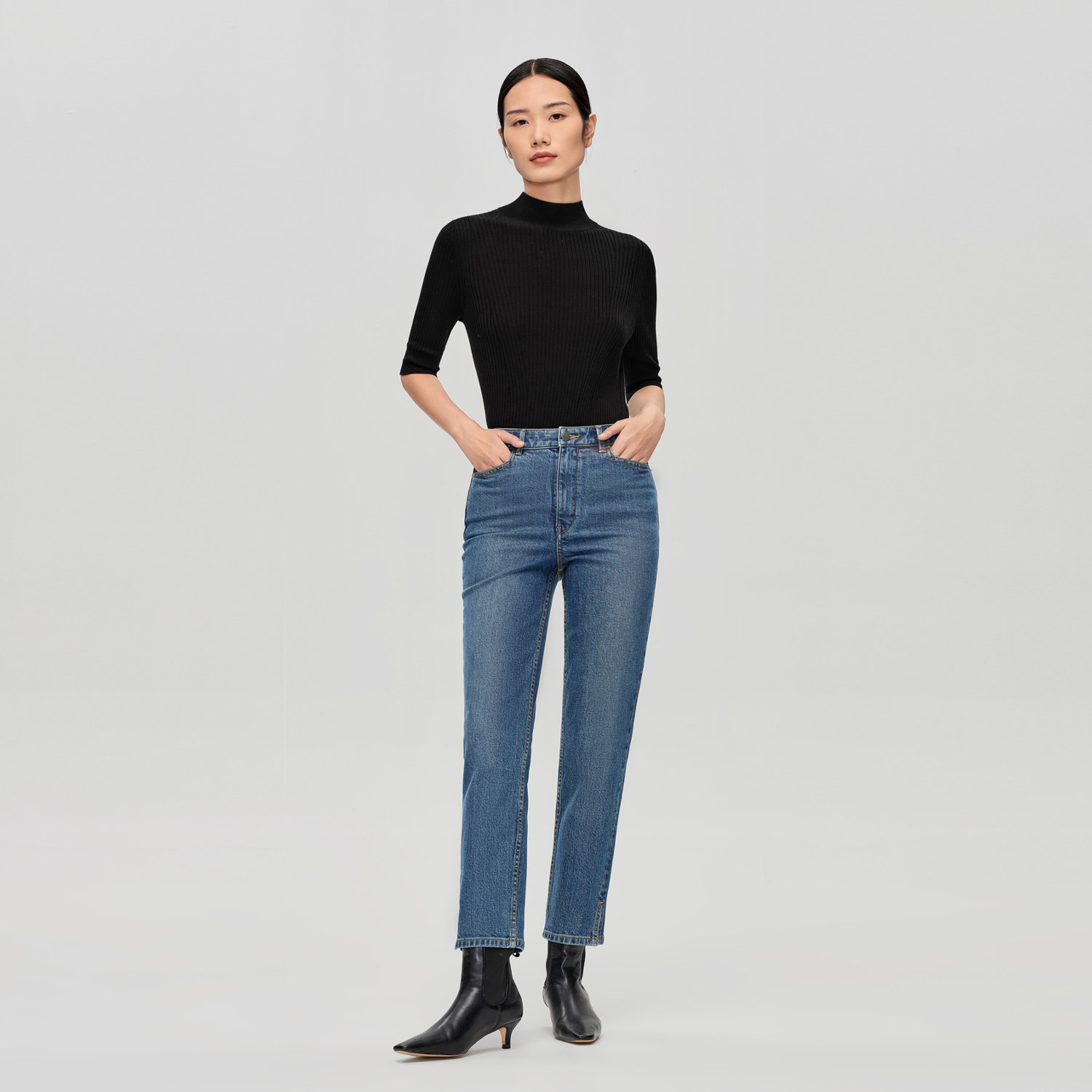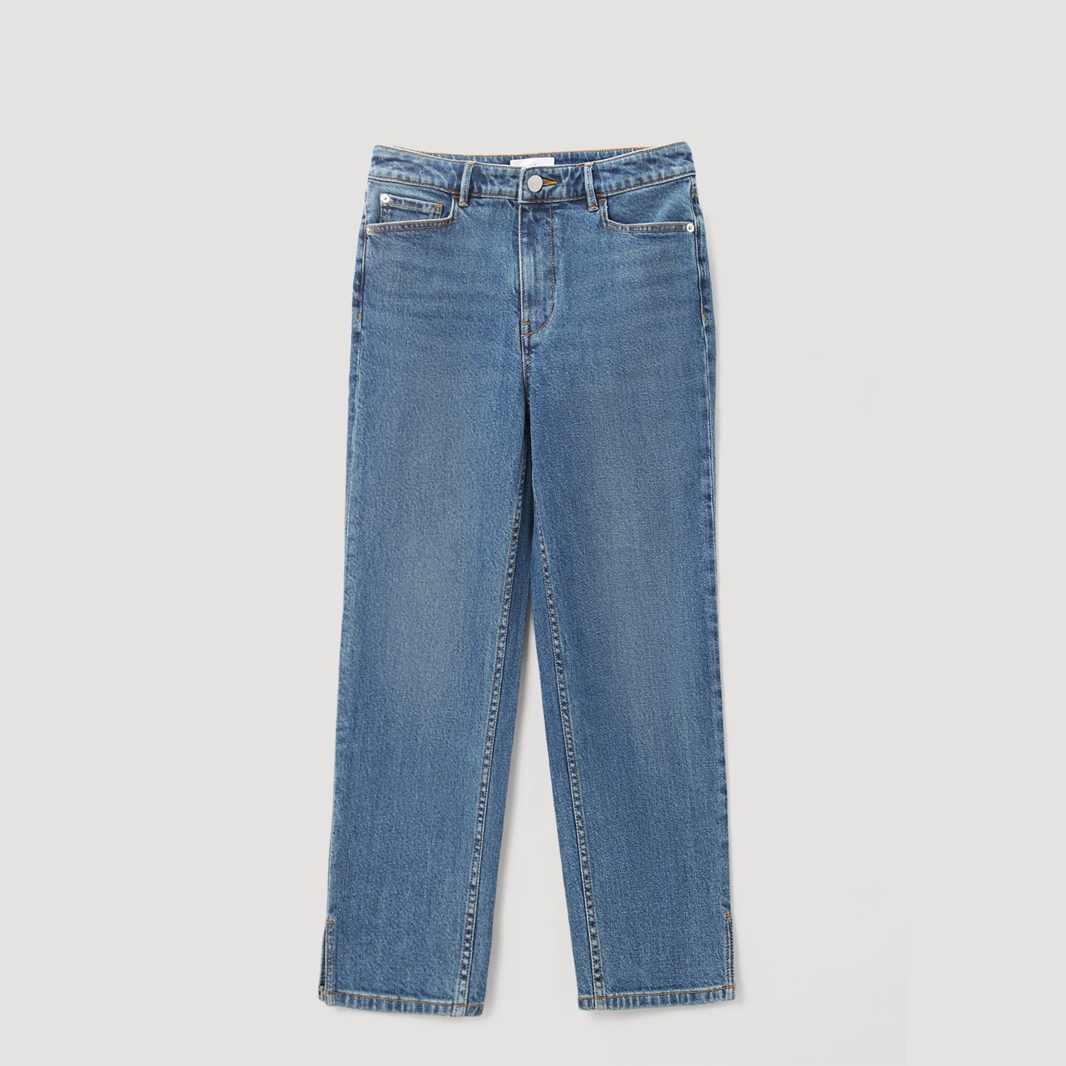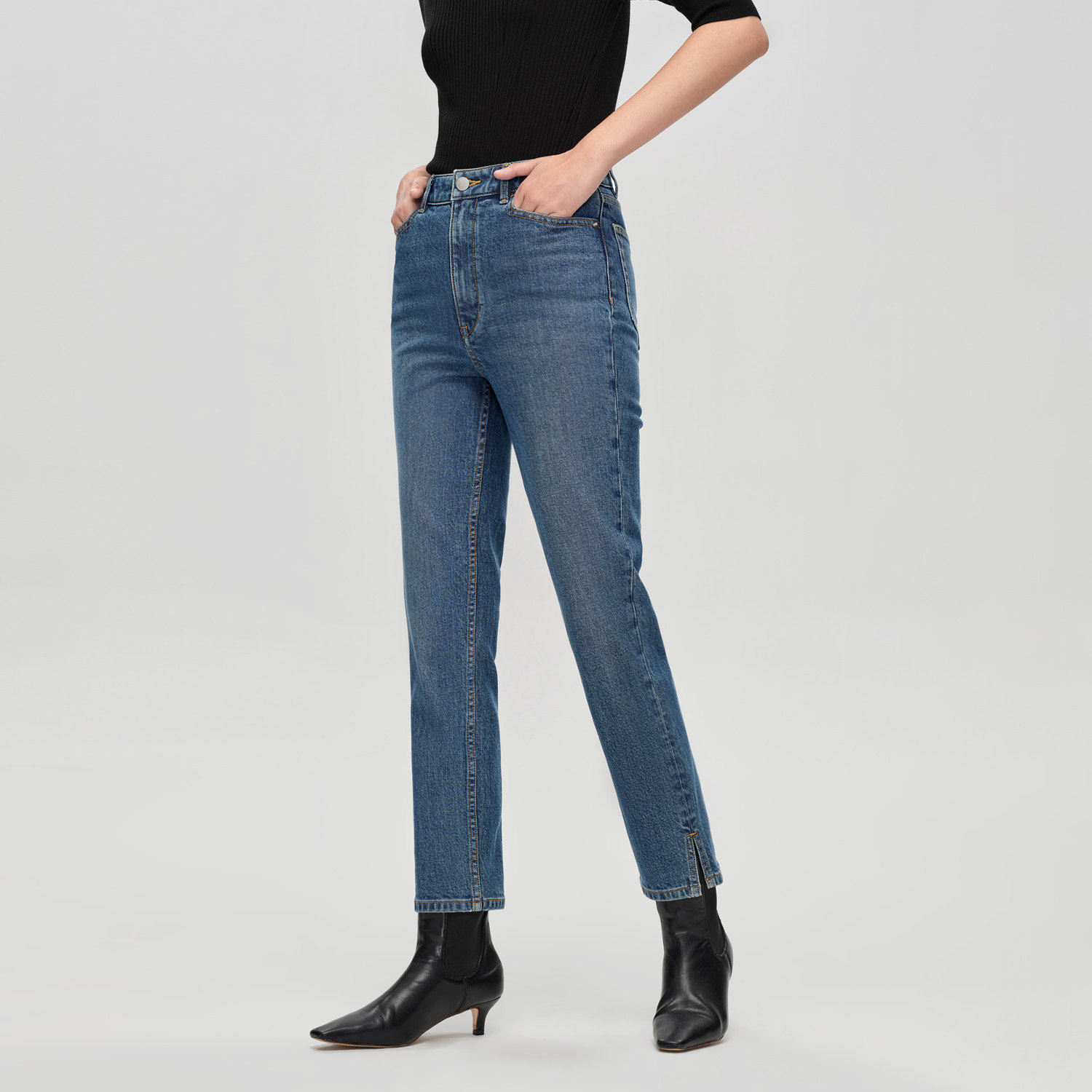 OVV秋冬新款女装意大利进口棉质面料中腰直筒开衩牛仔裤
