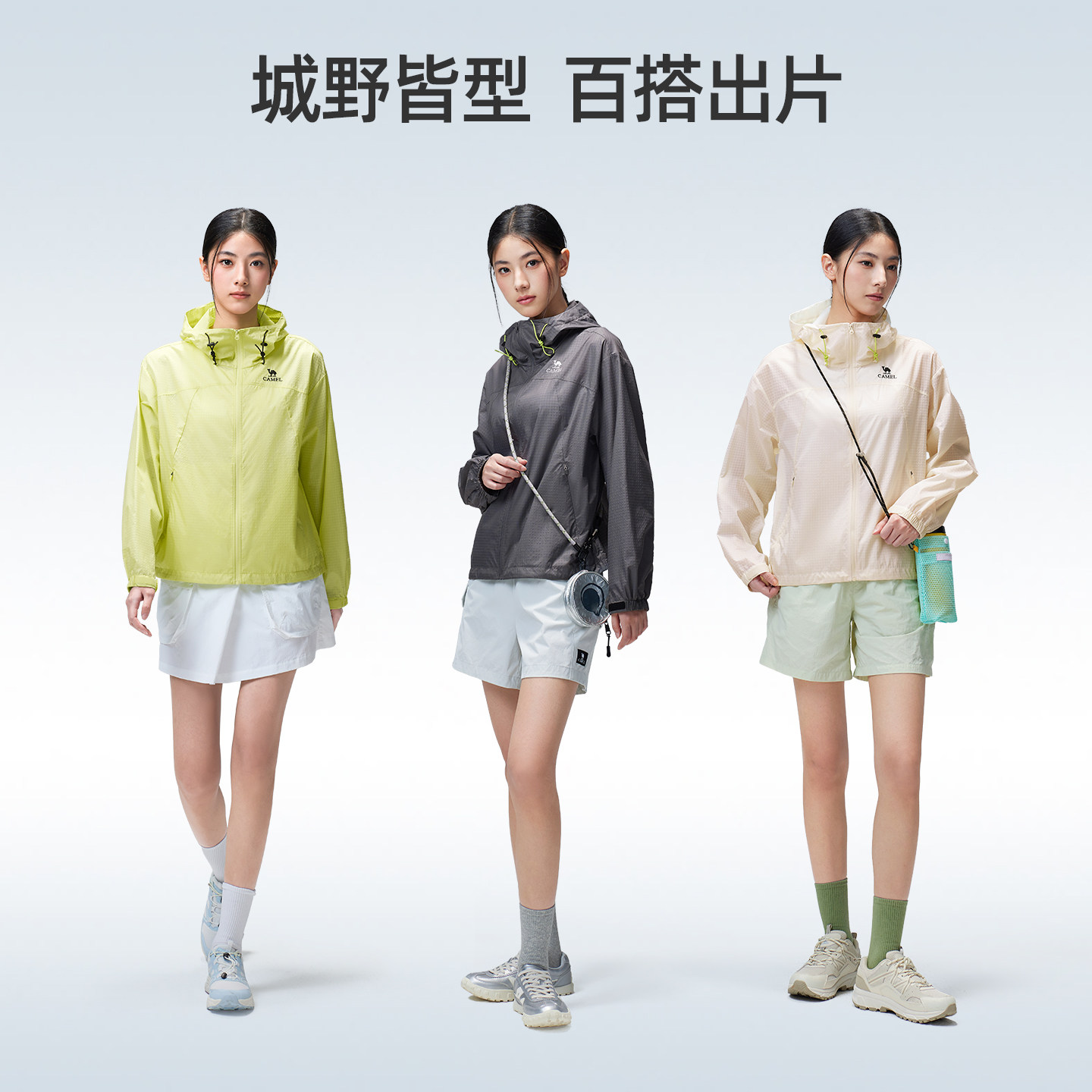 骆驼户外防晒衣2026春夏新款女款透气连帽防风防泼水耐磨运动外套