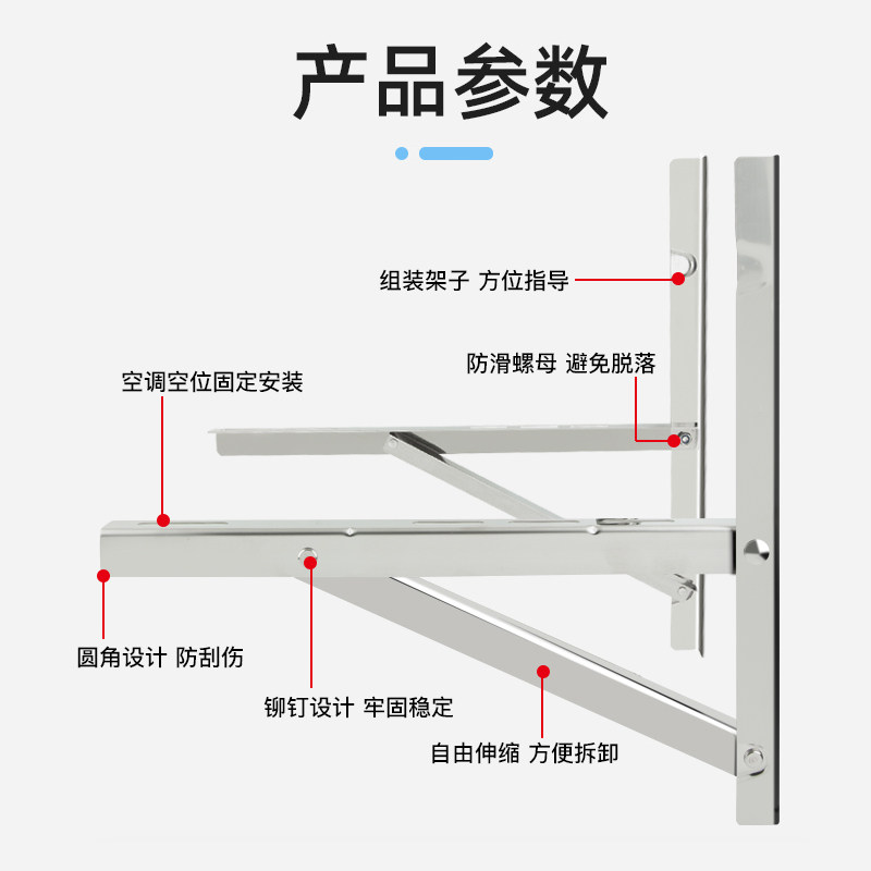 304不锈钢空调外机支架美的外加厚长机架大1.5匹2P3P空调架子