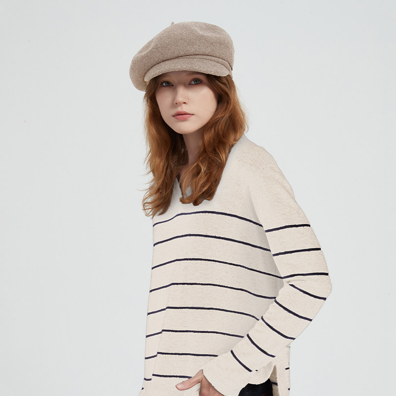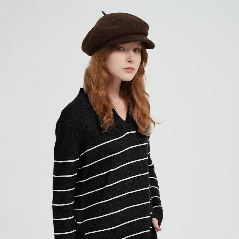 Petit Bari简约高阶羊毛羊绒宽檐贝雷帽女