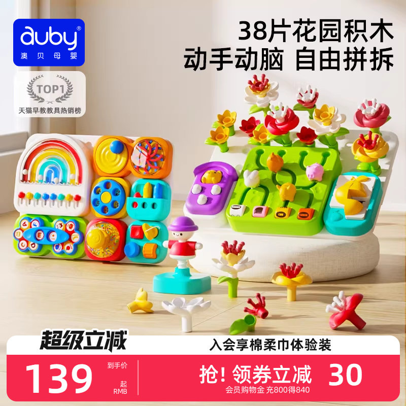 澳贝忙碌板宝宝婴儿早教益智玩具洞洞板积木拼装花