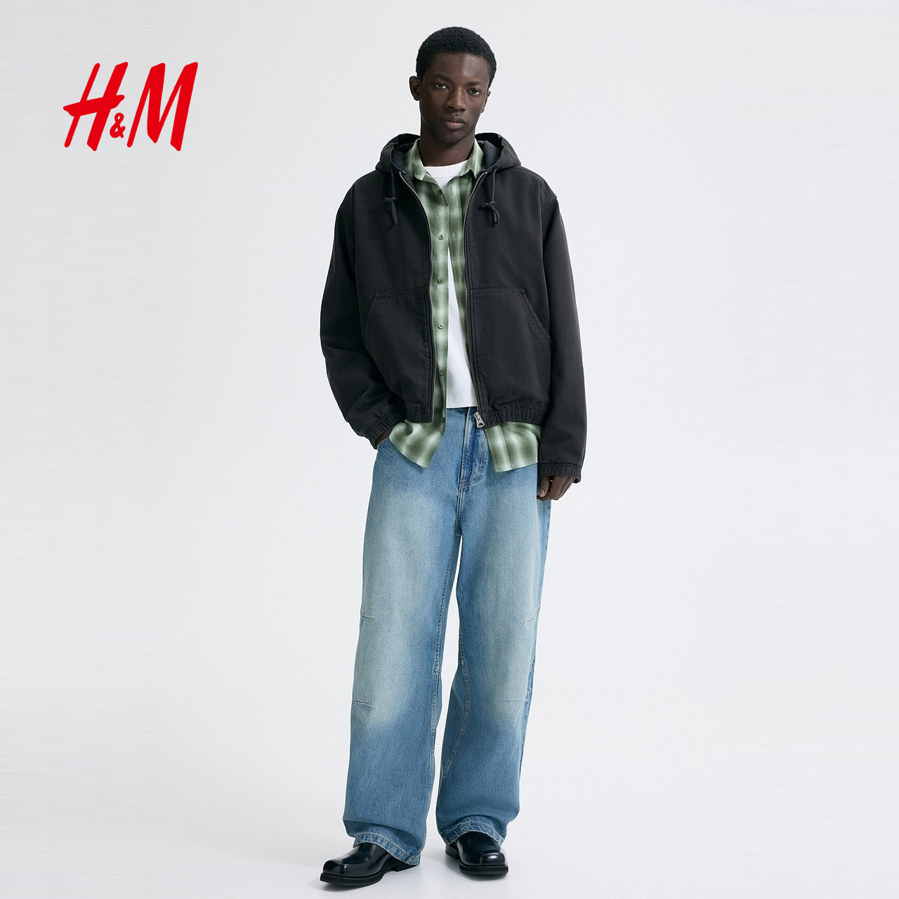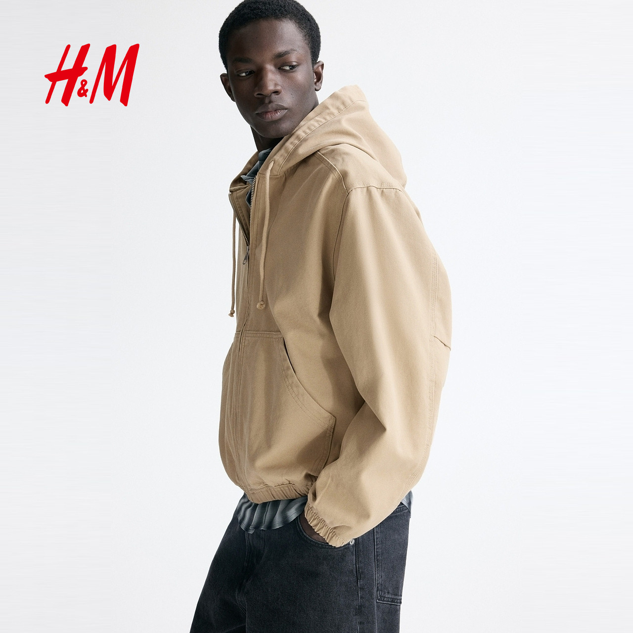 HM男装女装夹克春季情侣装巴恩风户外连帽工装外套1311048