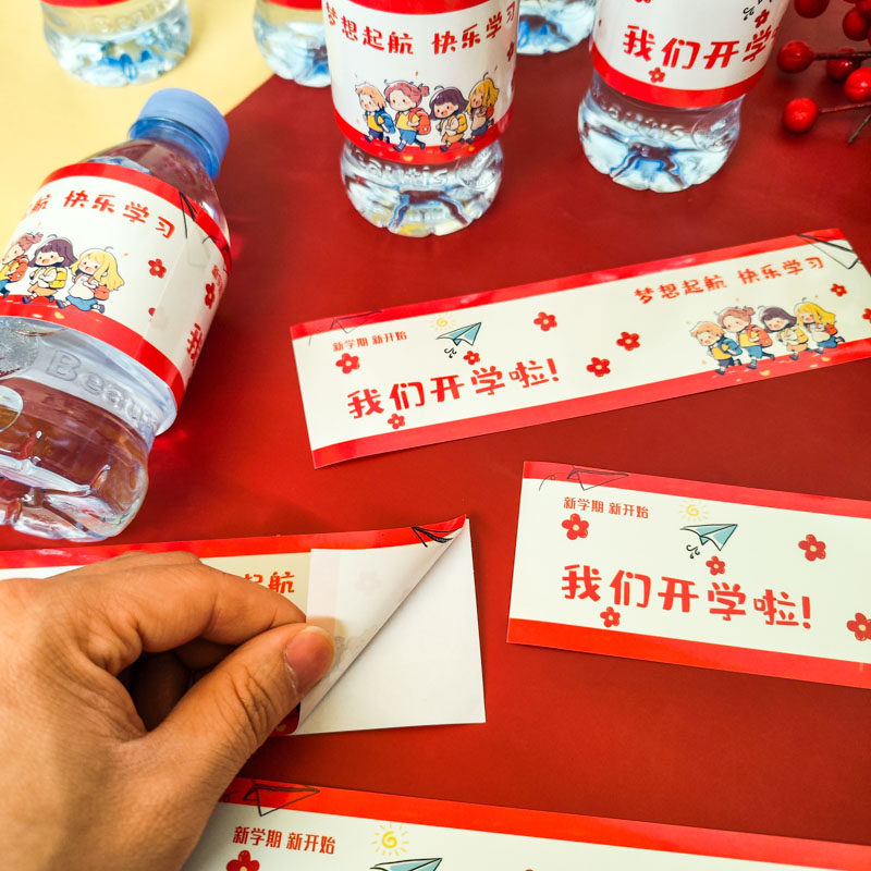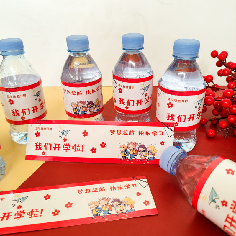 2026我们开学啦场景布置教室桌面矿泉水瓶贴纸定制创意幼儿园小学生新学期仪式感签到小礼物励志祝福标签贴画