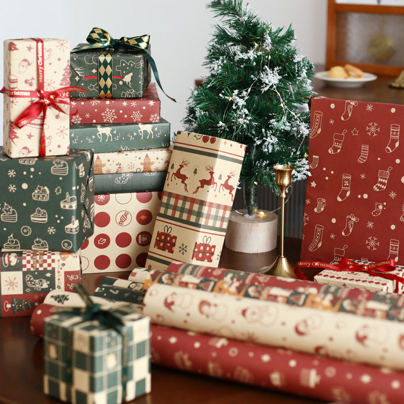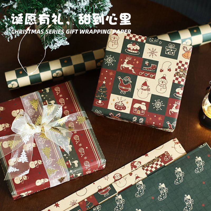 圣诞礼物新年包装纸大尺寸高级感手工diy包装材料牛皮高颜值打包纸儿童圣诞节零食糖果礼盒平安夜苹果礼品纸