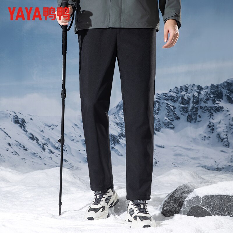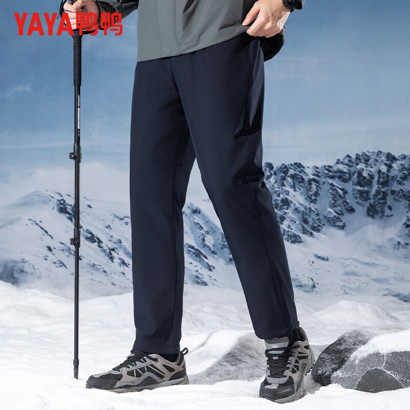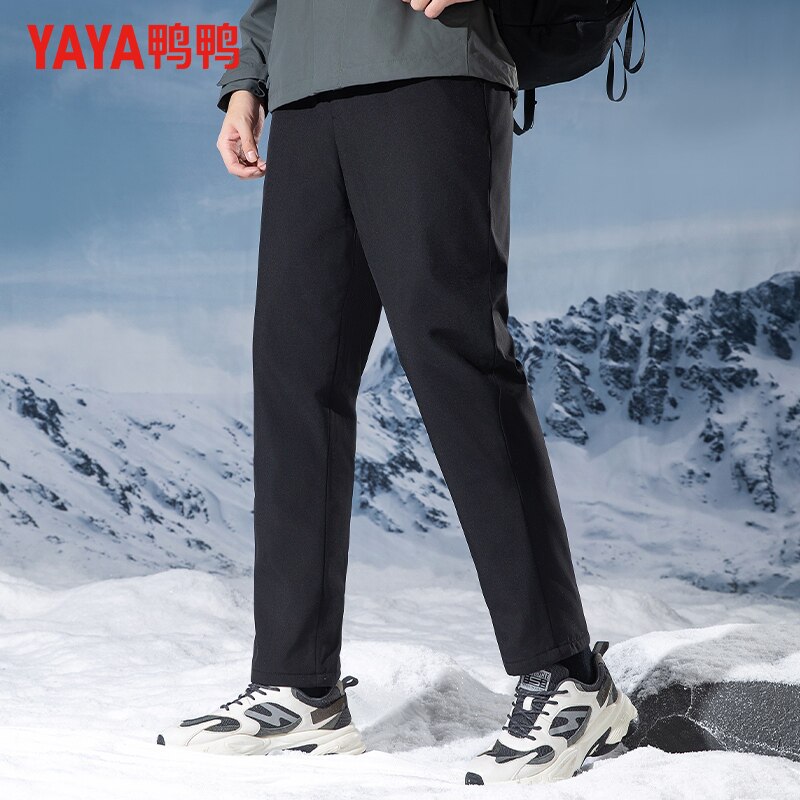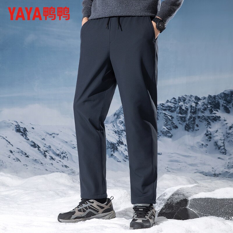 鸭鸭冬季羽绒裤男外穿抽绳裤腰加厚保暖户外休闲直筒裤束脚长裤