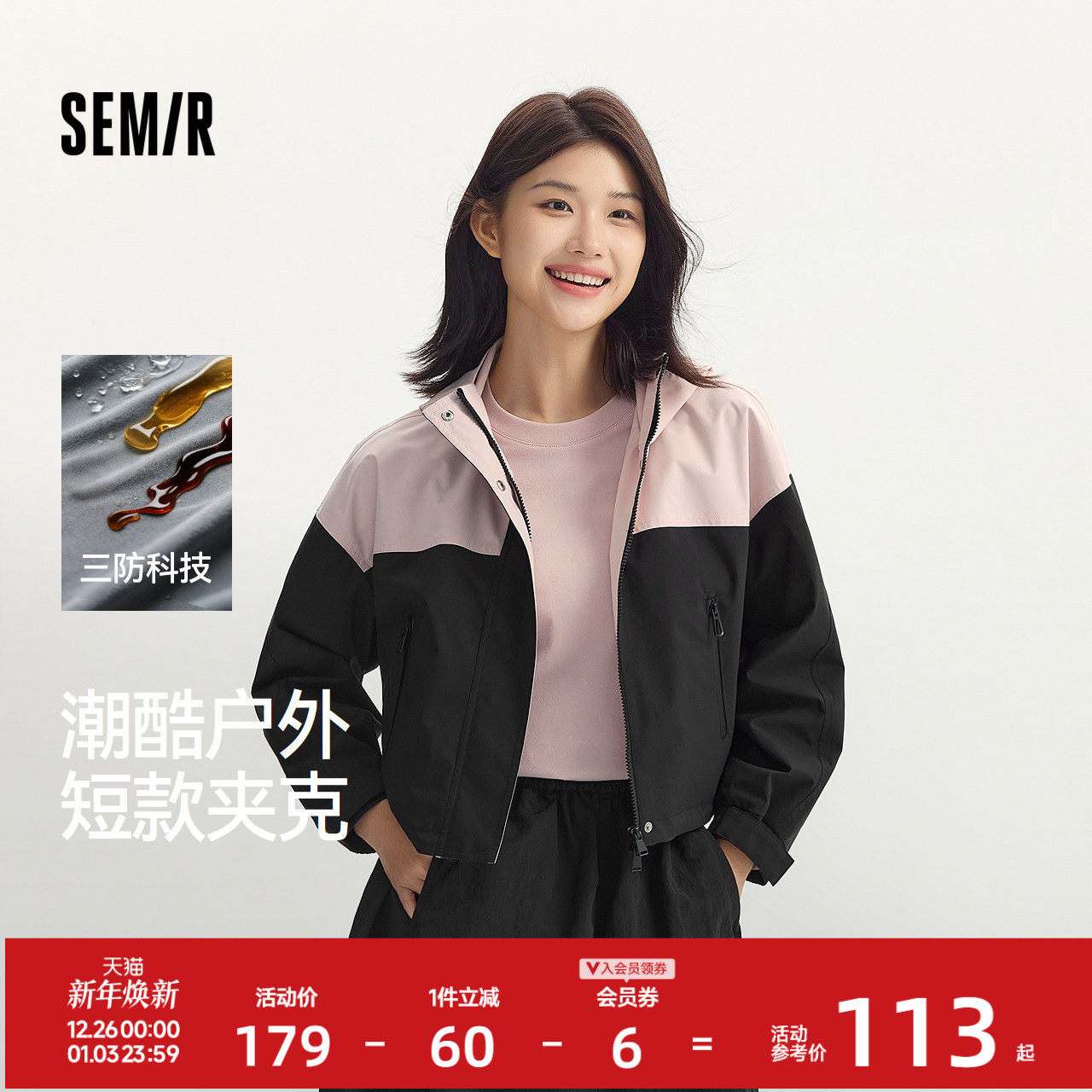 防护外套|森马外套女短款连帽oversize秋季潮酷拼色三防夹克户外