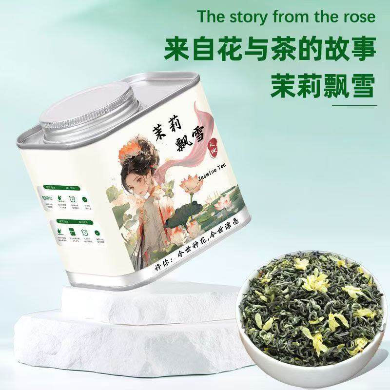 新茶茉莉飘雪花茶正宗古法窨制浓香型花草茶口粮茶叶自己喝小罐装