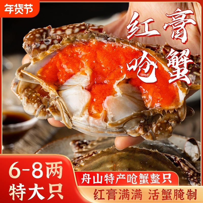 舟山宁波特产红膏咸呛蟹醉蟹鲜活蟹腌制酱蟹母蟹酱梭子蟹炝蟹水产