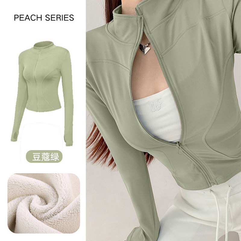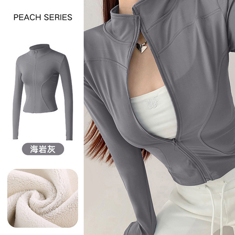 秋冬加绒加厚瑜伽外套女新款运动服上衣跑步健身防风保暖训练白色