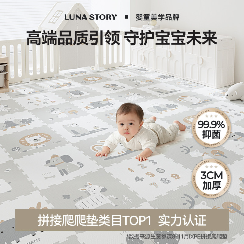 lunastory拼接爬爬垫婴儿爬行垫宝宝IXPE加厚家用无甲醛地垫