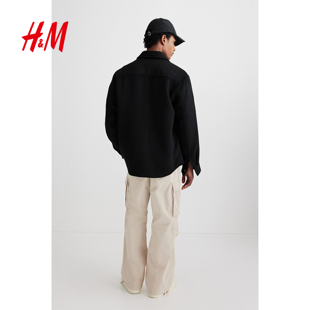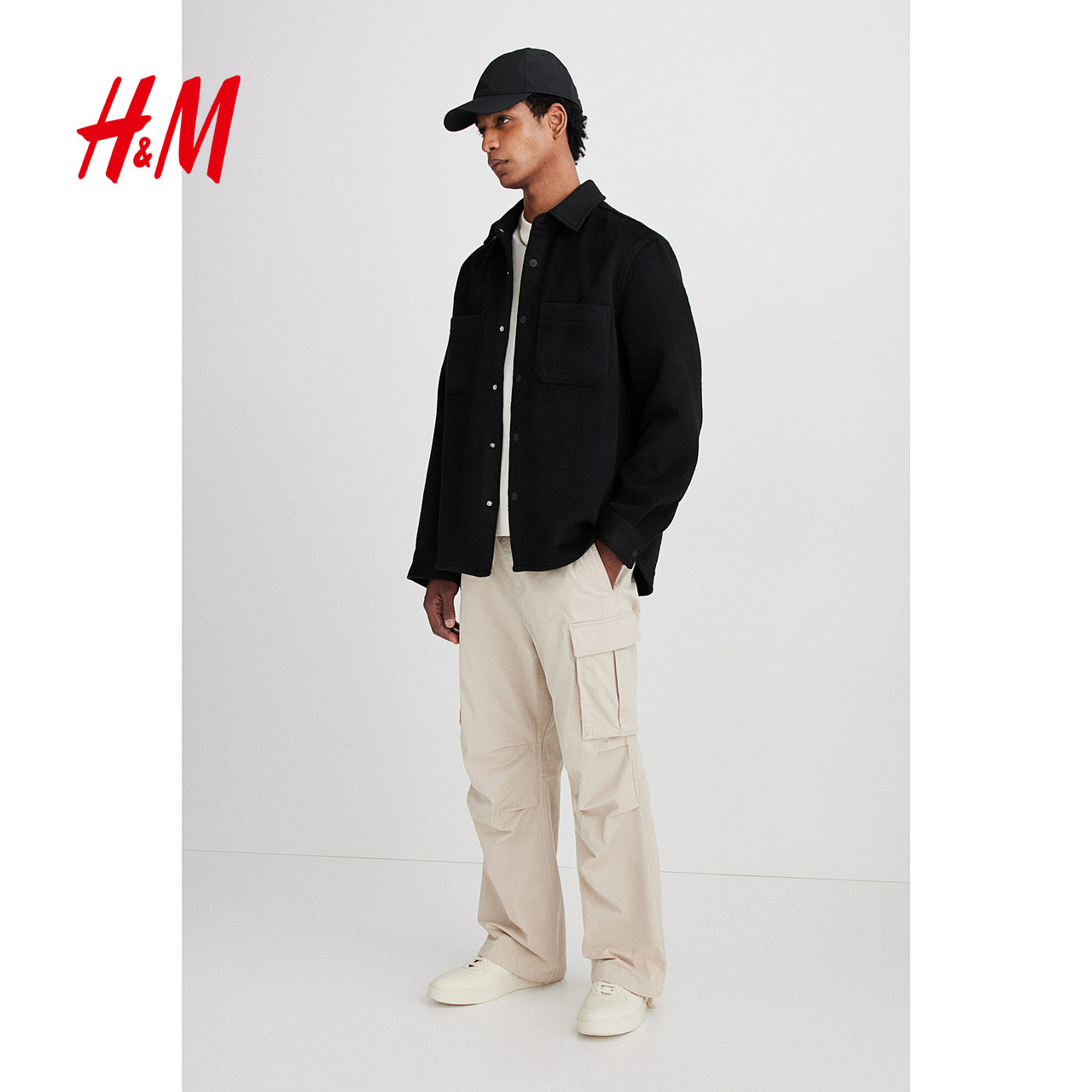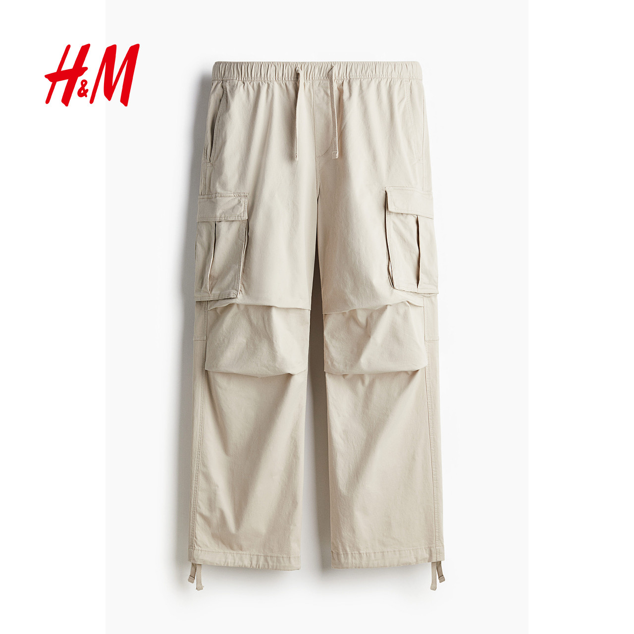 HM男装休闲裤春季棉质中腰松紧腰直筒版通勤长裤工装裤1228206