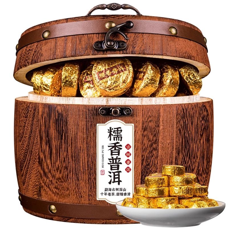 糯米香普洱茶熟茶云南古树普洱糯香小茶饼小沱茶散装礼盒装600g