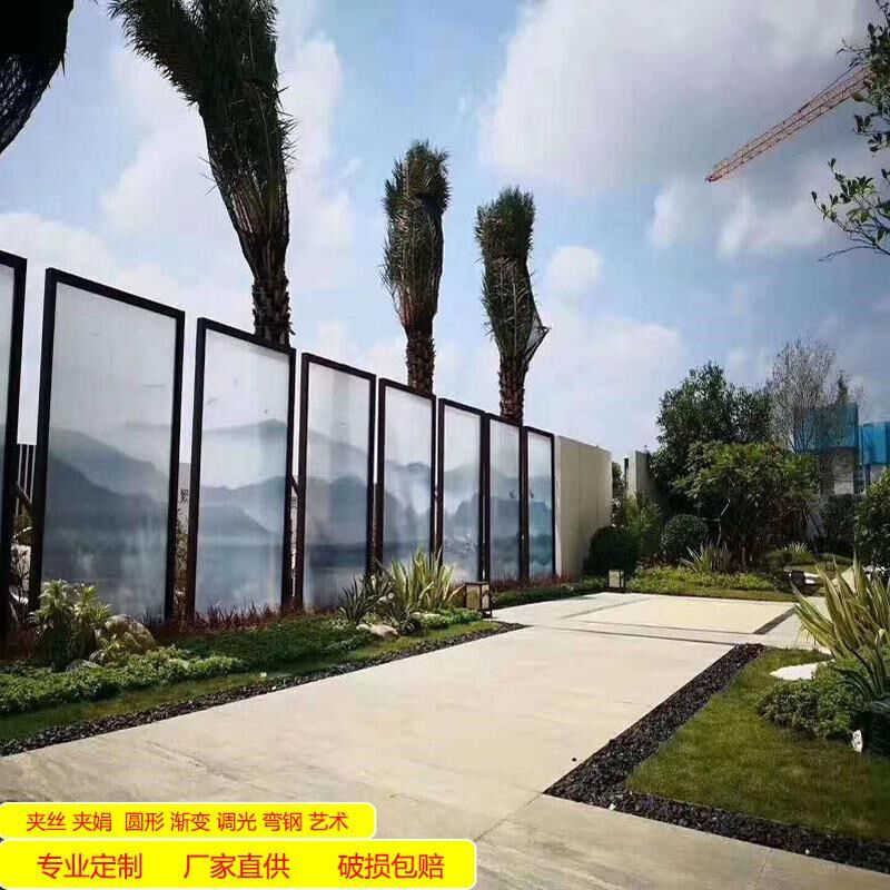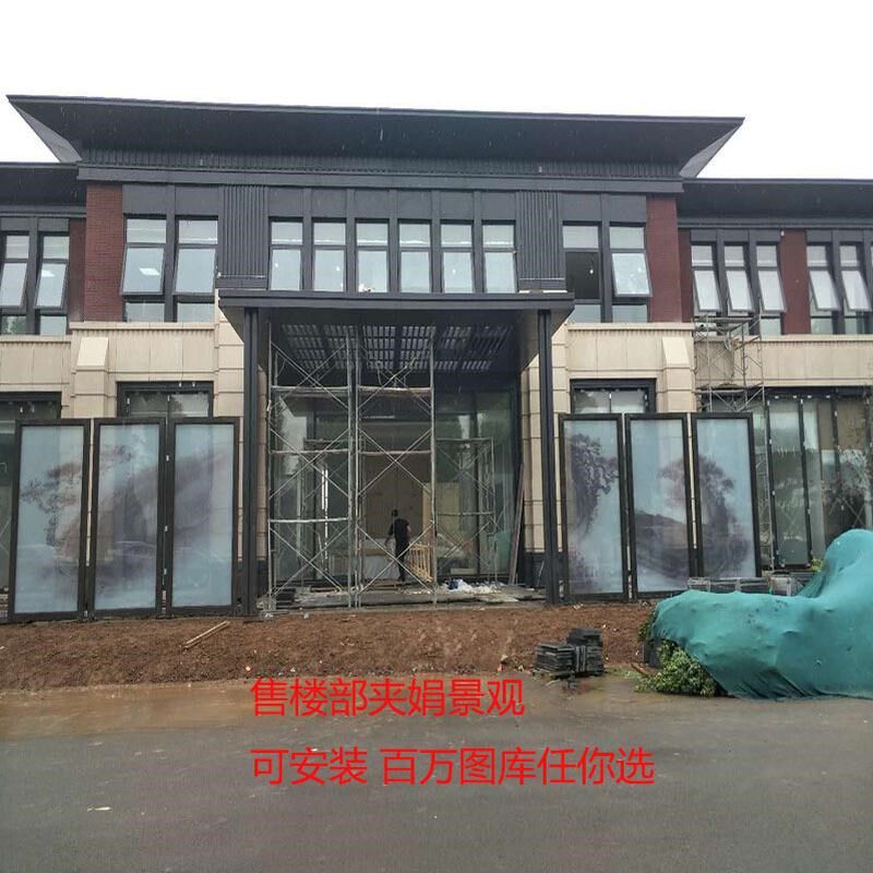 热销来图来样制做夹绢夹丝玻璃山水画玻璃屏风隔断景观墙装饰玻璃