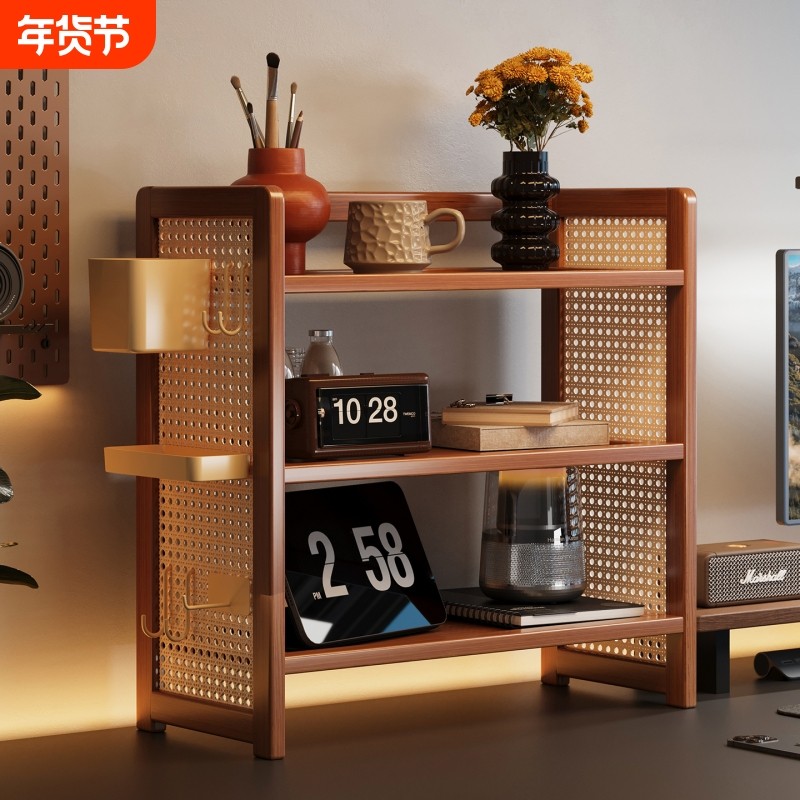 全实木桌面书架桌上置物架办公室收纳改造神器书桌分层伸缩小书柜