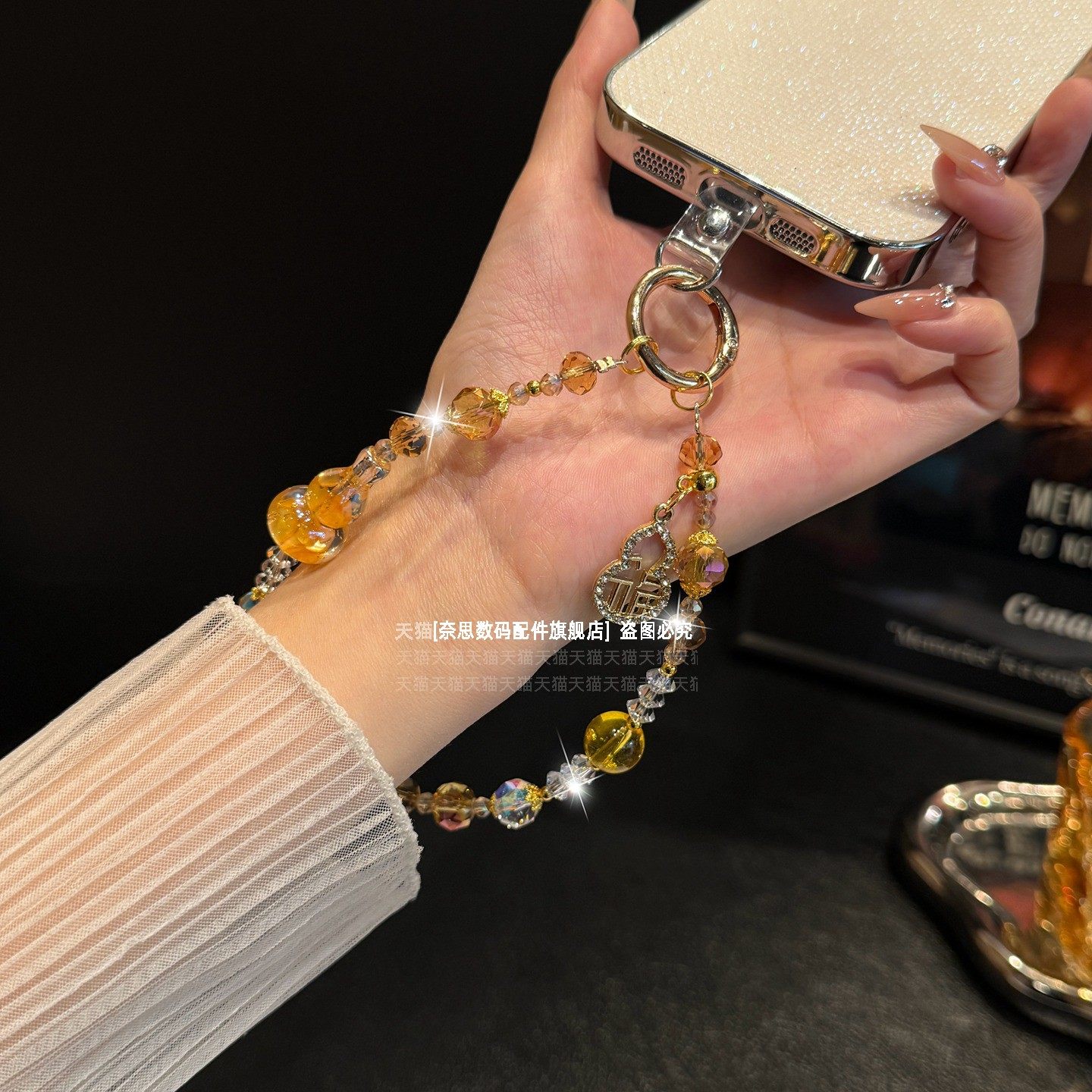好看水晶葫芦手机链好运挂饰金箔串珠手腕挂链绝美新中式链条吊坠新年喜庆手链马年本命年钥匙扣挂件女垫片壳