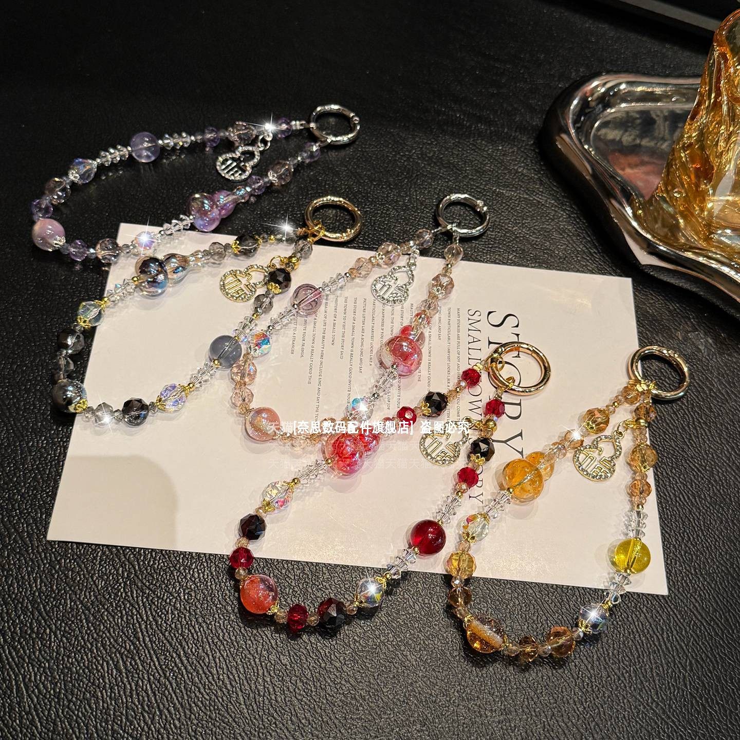 新中式国风彩色葫芦水晶手机腕带挂链