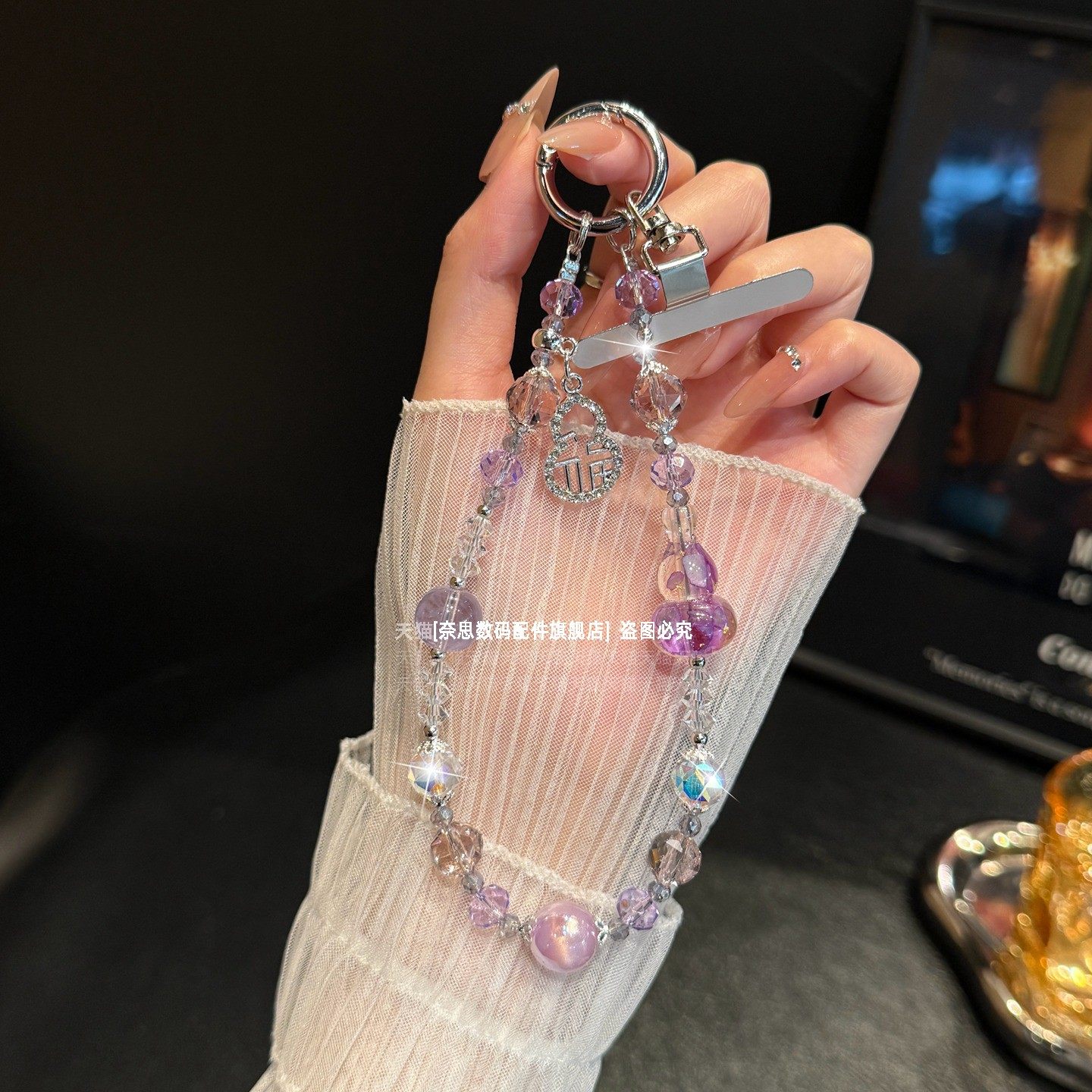 奢华高级感水晶手提链条手腕短挂绳带夹片壳钥匙扣包包挂件潮